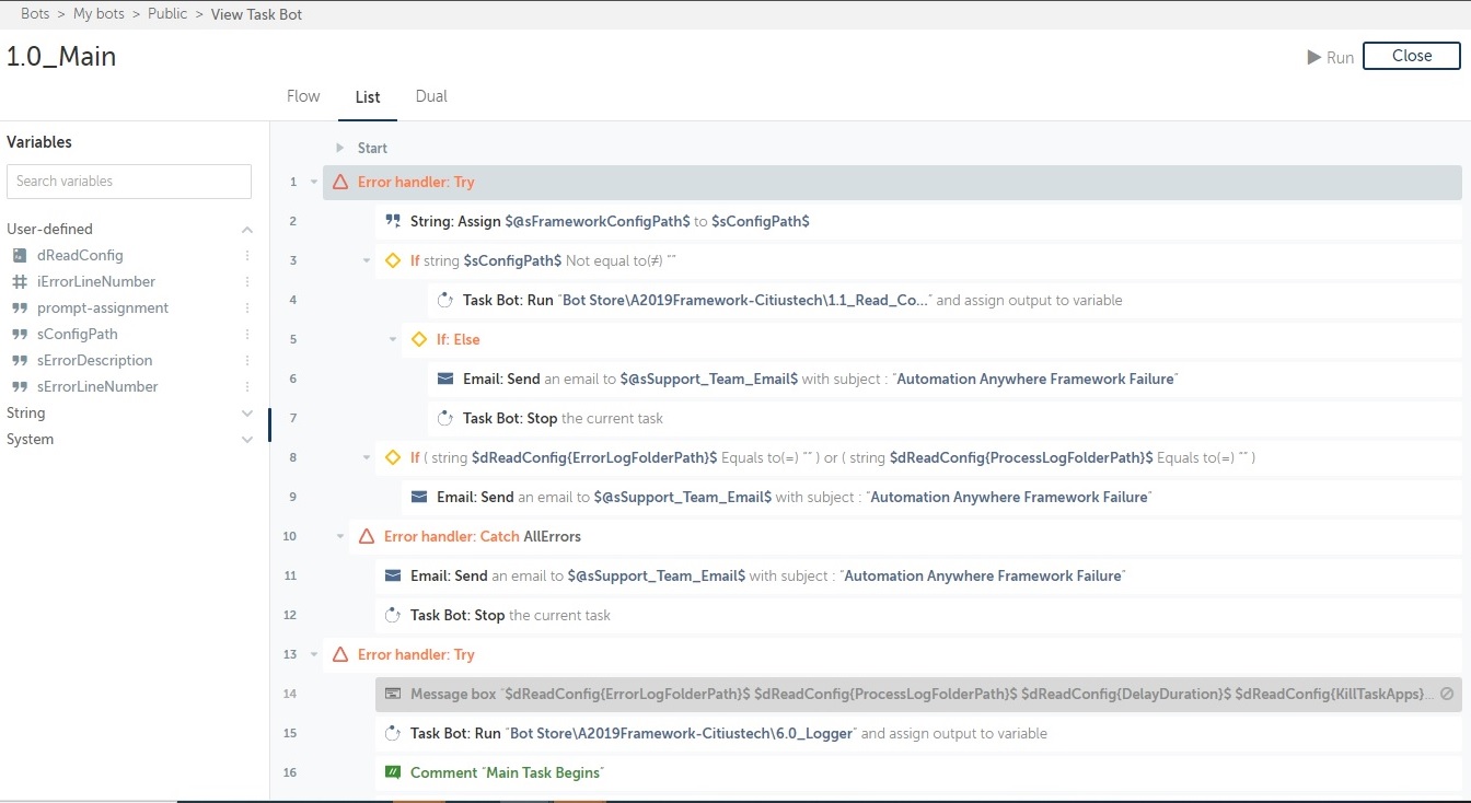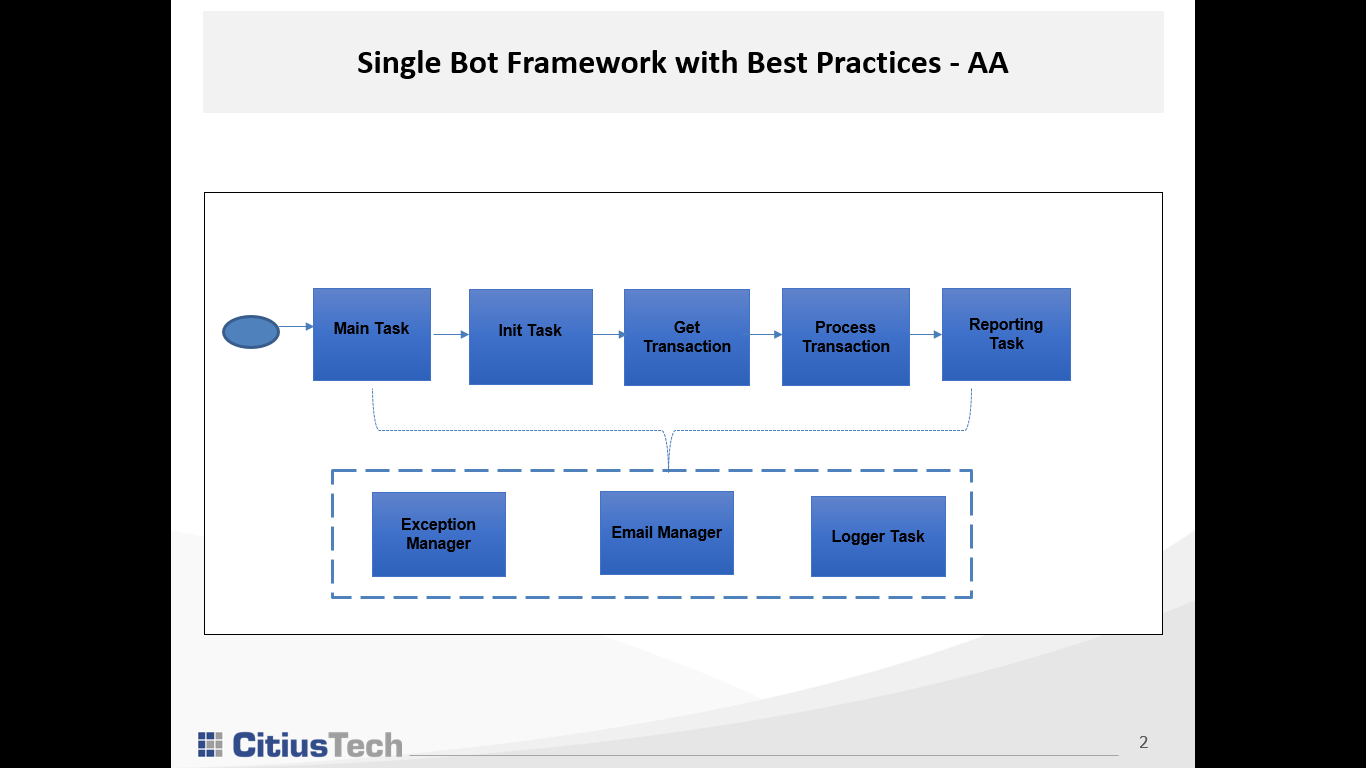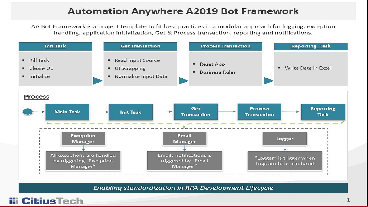 The framework can be used in any Automation Anywhere process with single bot architecture.