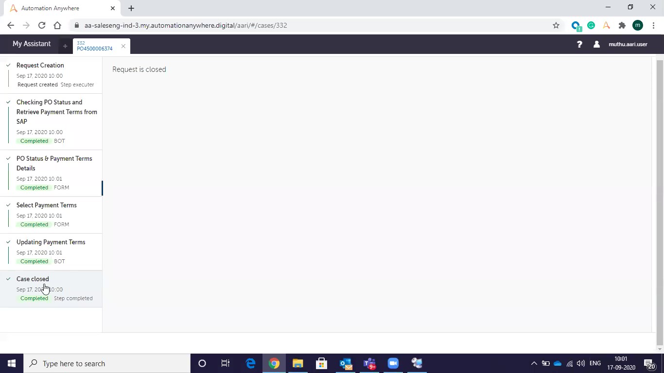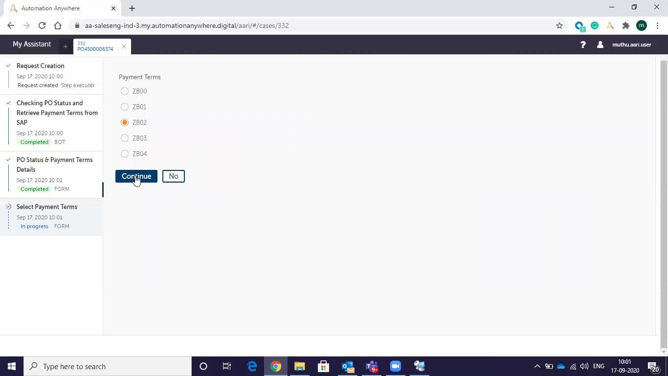 9.Bot will trigger a runner and update the new payment term for the particular PO