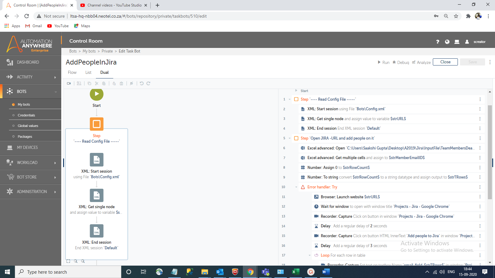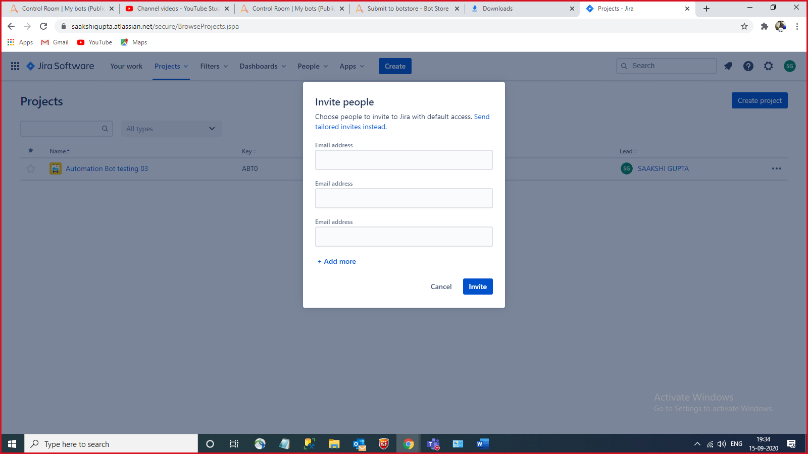 This bot will read the input Excel file for team members' emails, browse Jira, and add team members' email addresses one by one, after which the bot will send invites to all to join