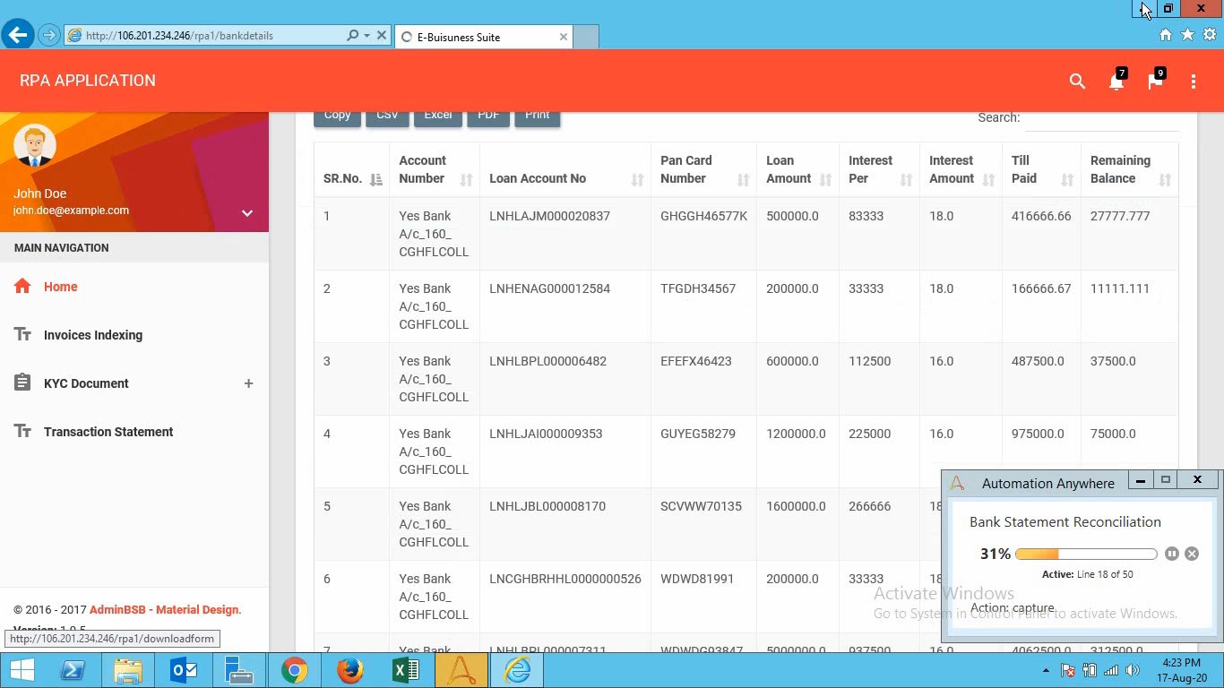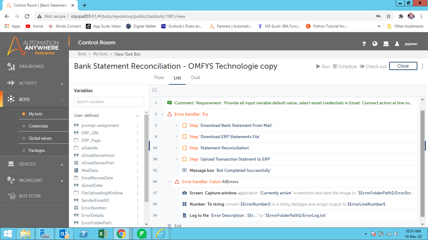 This bot downloads bank statements for mail server and transaction statements from the ERP system then reconciles bank statements and transaction statements