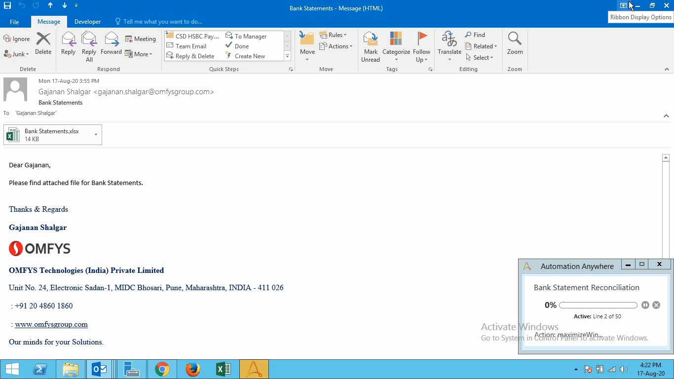 - Removes the manual effort to download the bank statement file from mail & transaction statements from ERP