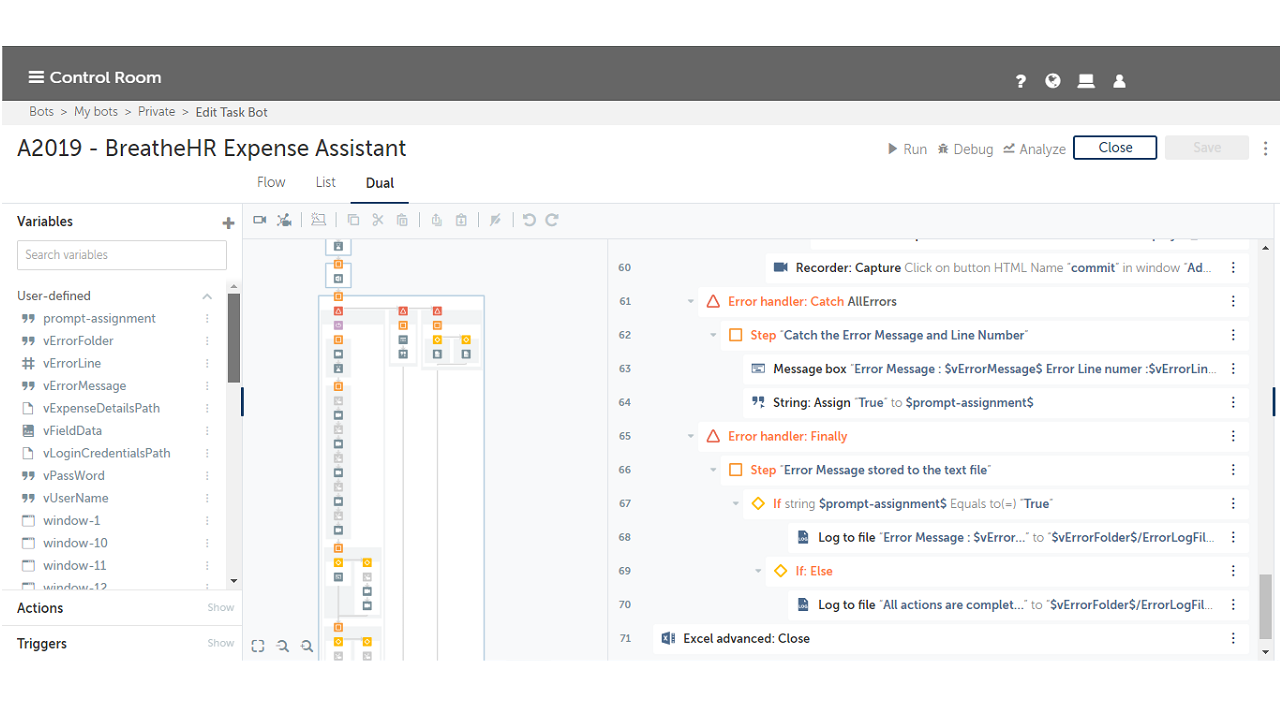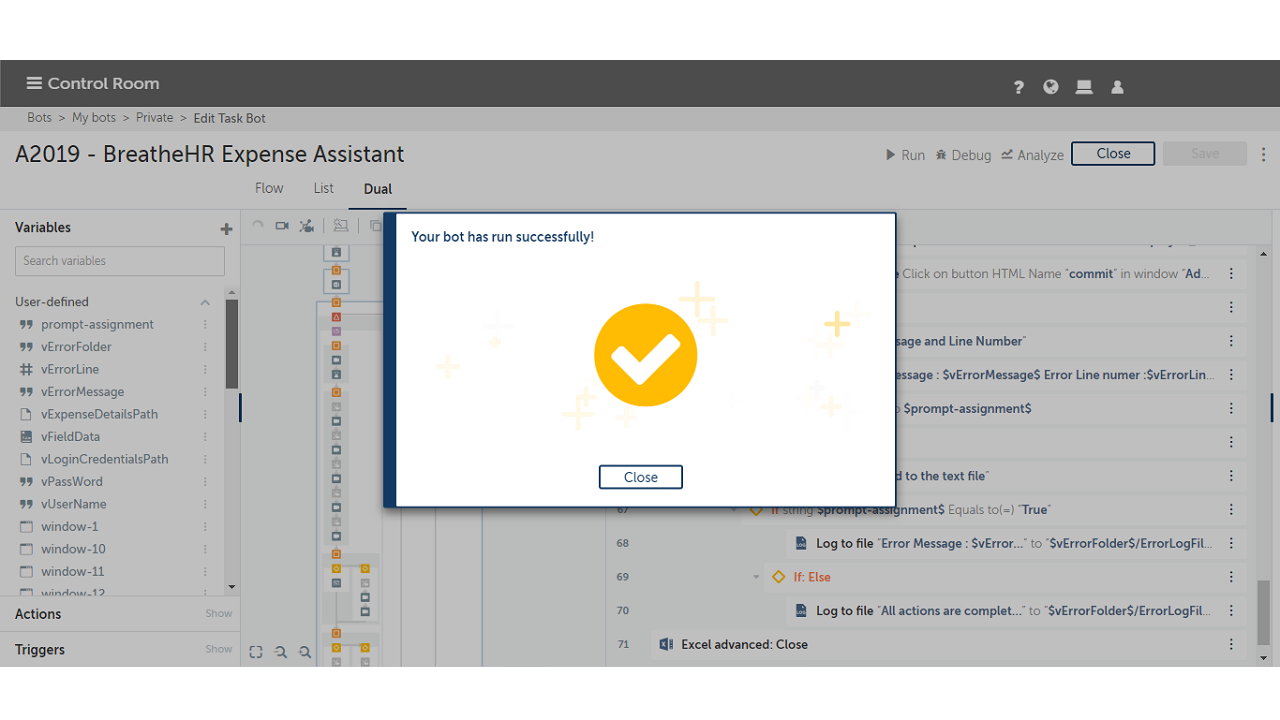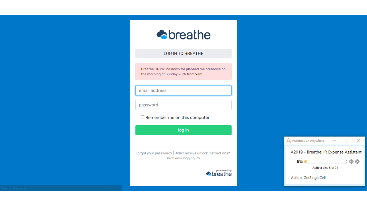 This bot automatically signs in to the BreatheHRM and creates an expenses claim, on behalf of the employee. The bot will read input data from the specific Excel sheet (Expense details) and enter the details of the expense claim into the BreatheHRM system. Helps employees create quick and effortless expense claims into HRM.