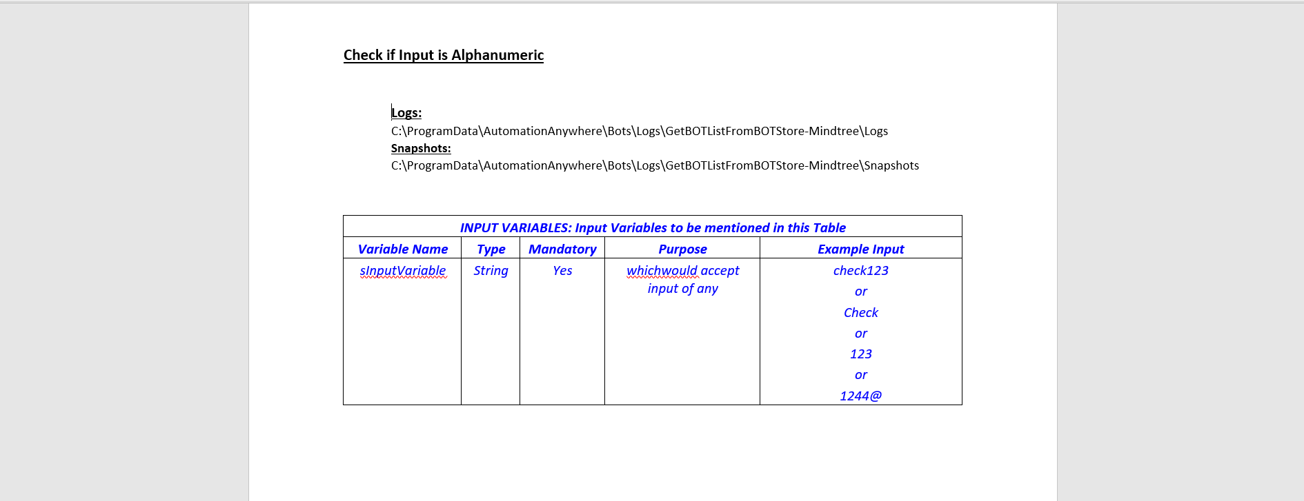 Input: Variable has been declared as input, information needs to be updated here