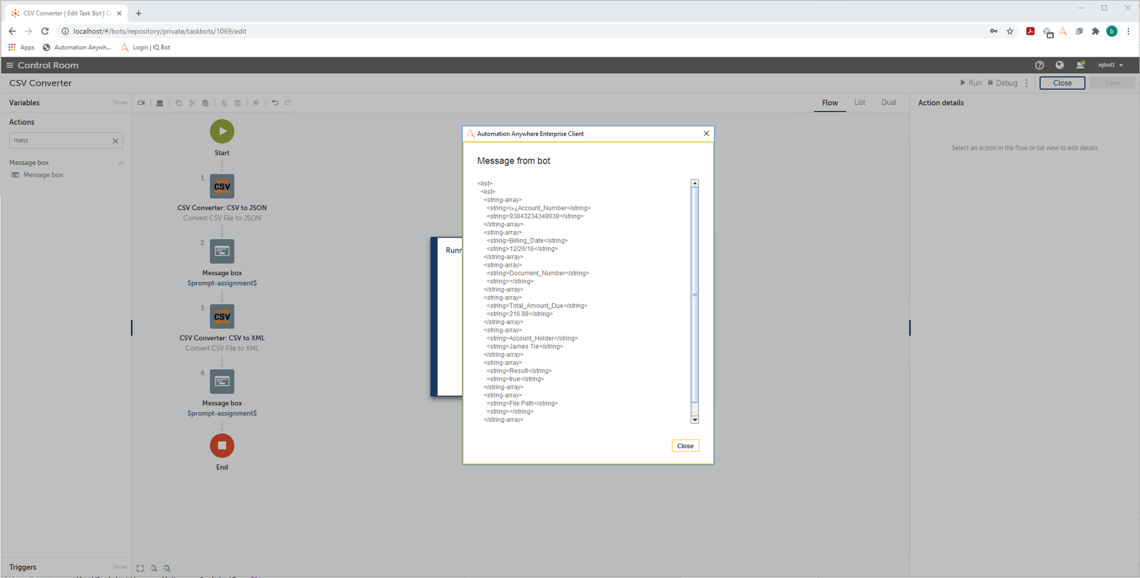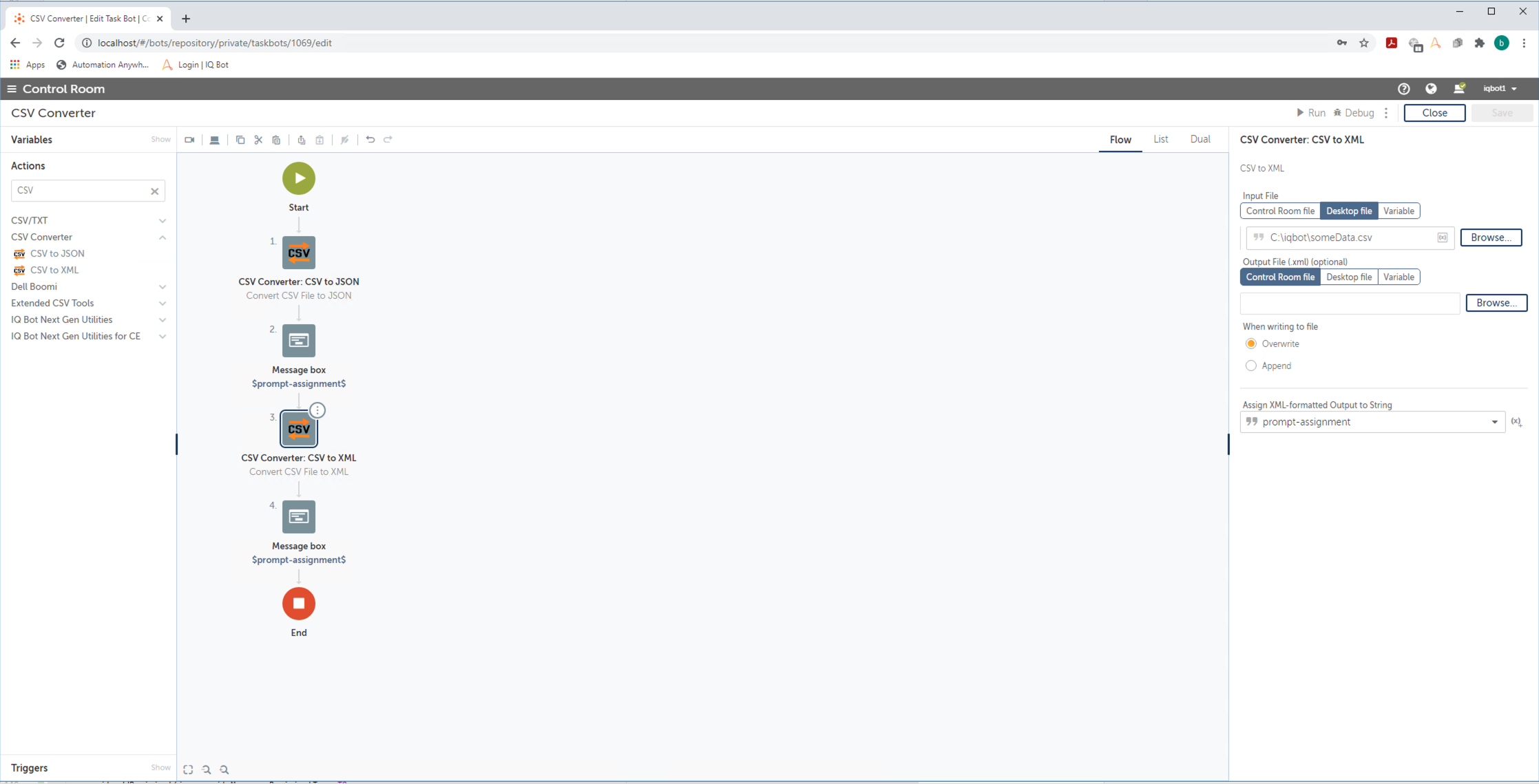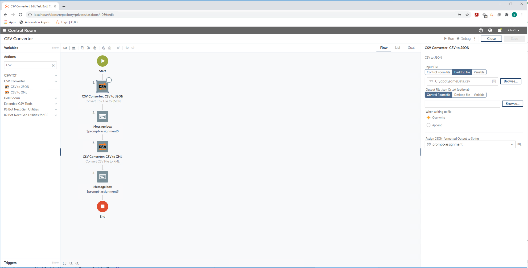 This bot can automatically convert CSV files to either XML or JSON