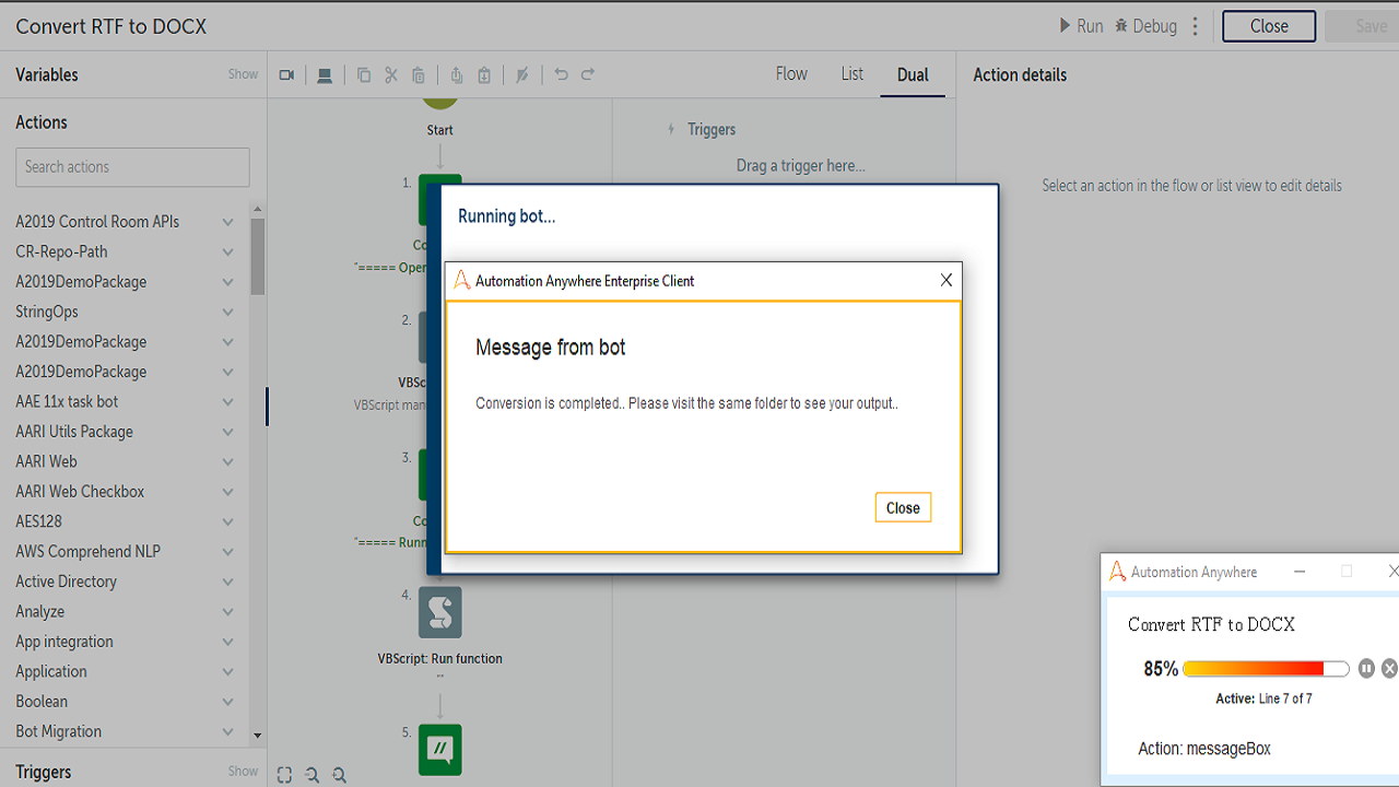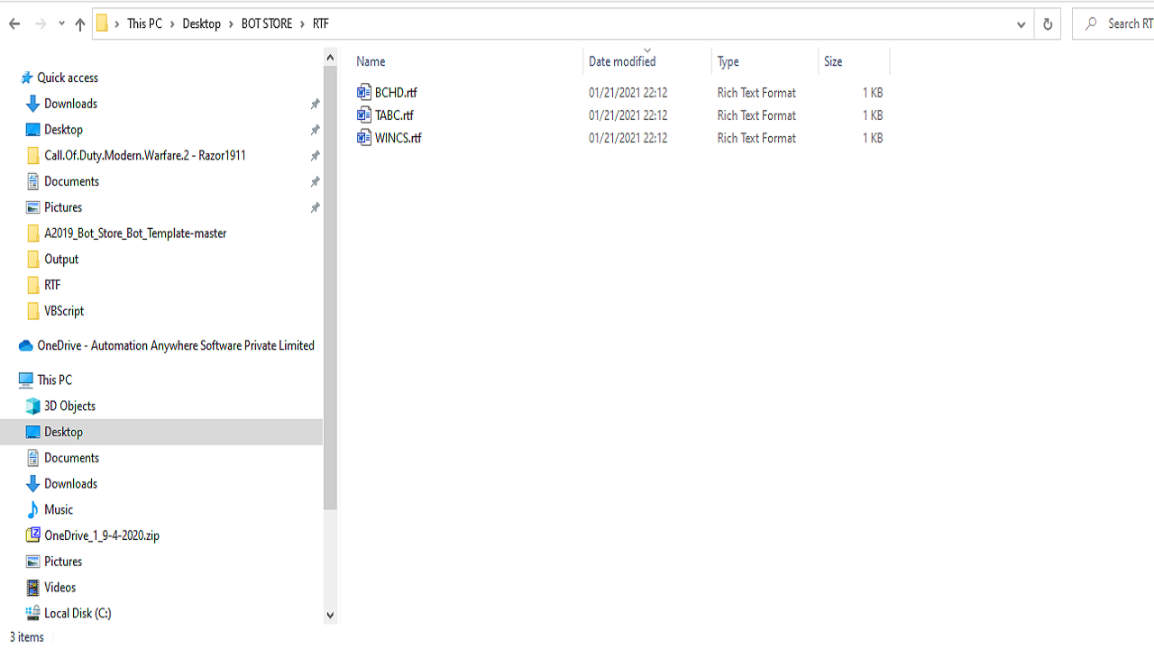 This bot will take an input from the user for a folder path and read the RTF documents saved in it. After reading the name of RTF documents the automation will start converting that into DOCX files.