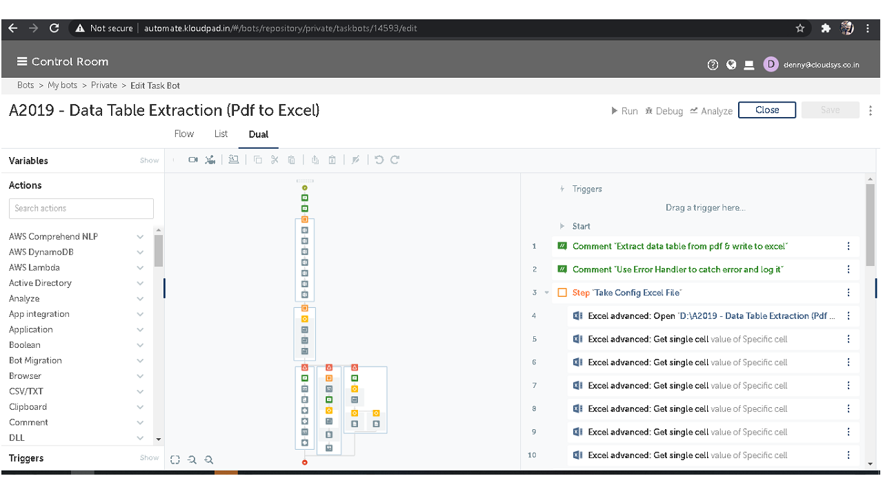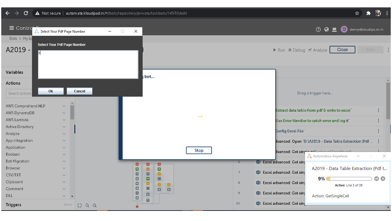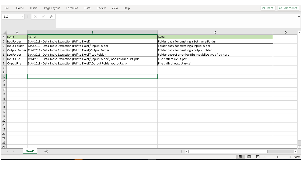 The bot extracts table data from a PDF and writes the data into an Excel file. Python pandas function is used for extracting function. The bot can be used prior to using IQ Bot to extract data tables from PDF files and transfers the required data from the PDF into Excel.