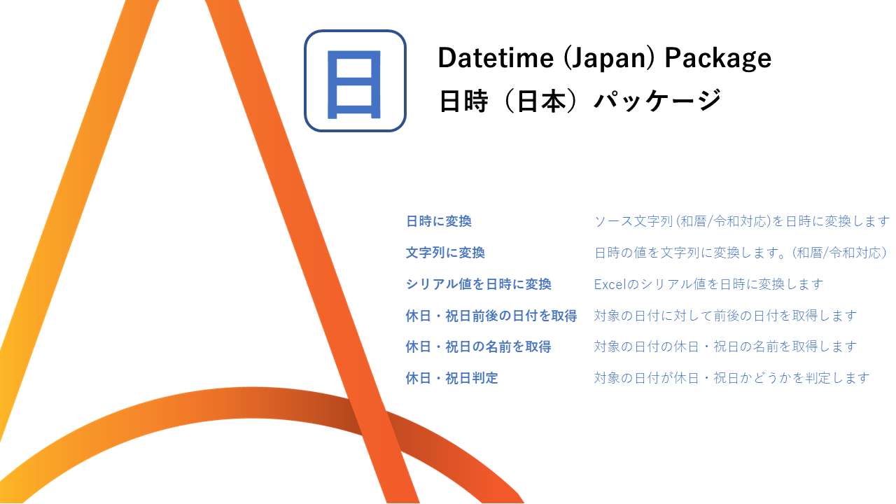 This package helps with handling Japanese dates. By performing various conversions of character strings and dates and conversions related to holidays, processing related to dates unique to Japan is performed.