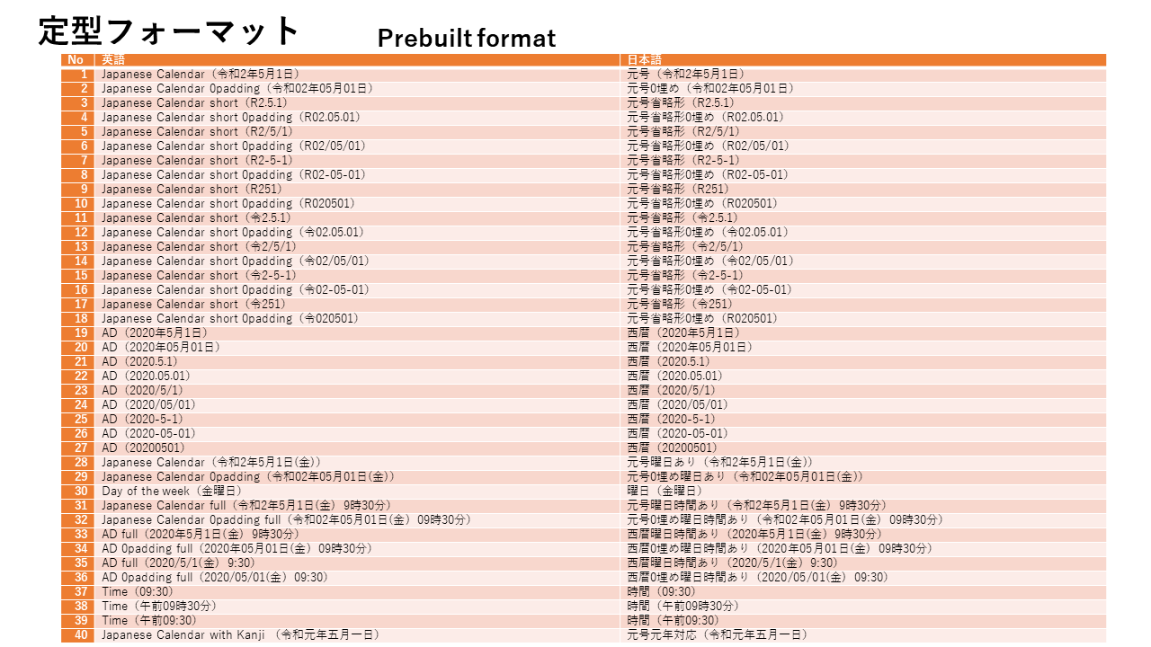- Ready to use as there are already 40 special date formats including Kanji
