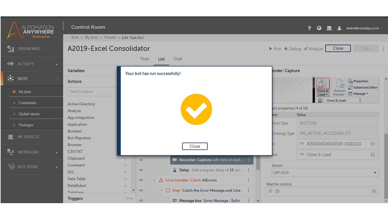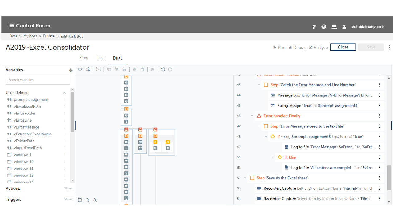 This bot automatically reads all Excel files in a folder and consolidates them into a single Excel file