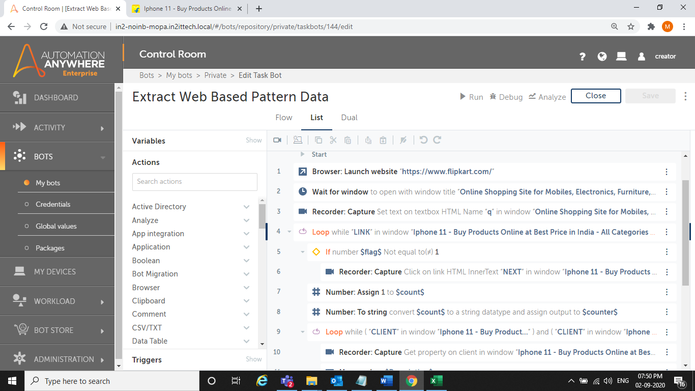 Using Automation 360, this bot will extract web-based pattern data from multiple pages and store the extracted data inside excel.
