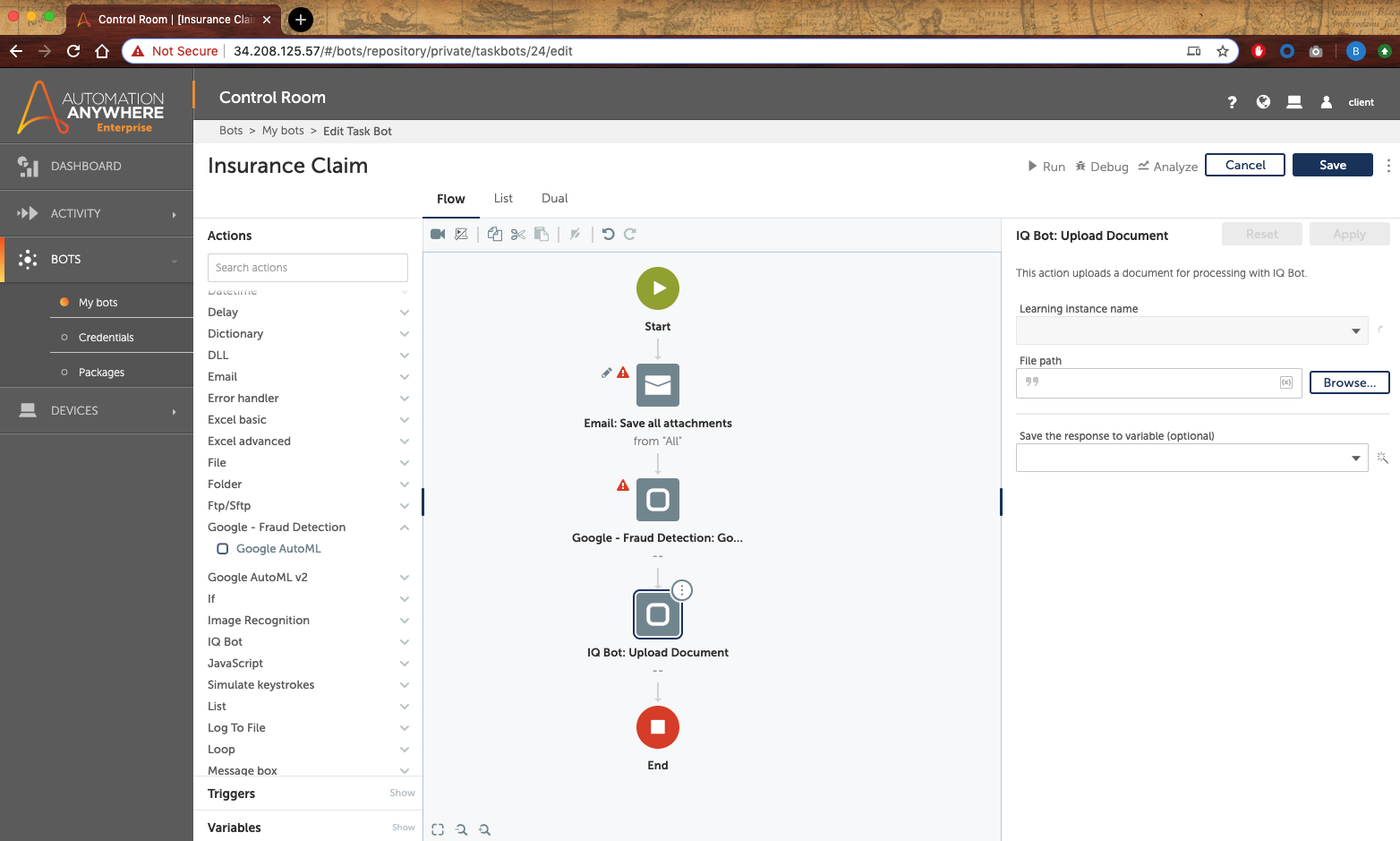 This bot uses Google AutoML image recognition capabilities to detect fraud in context of auto insurance claim processing