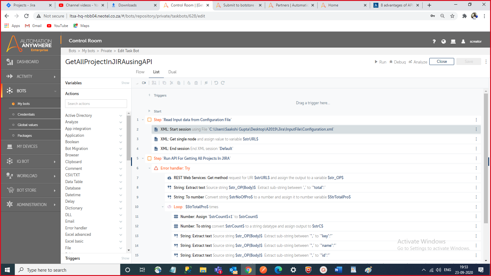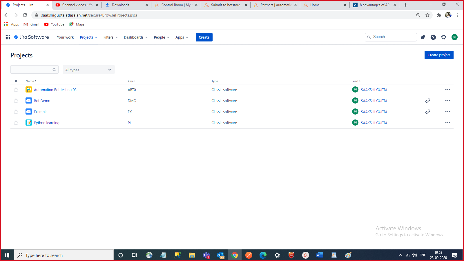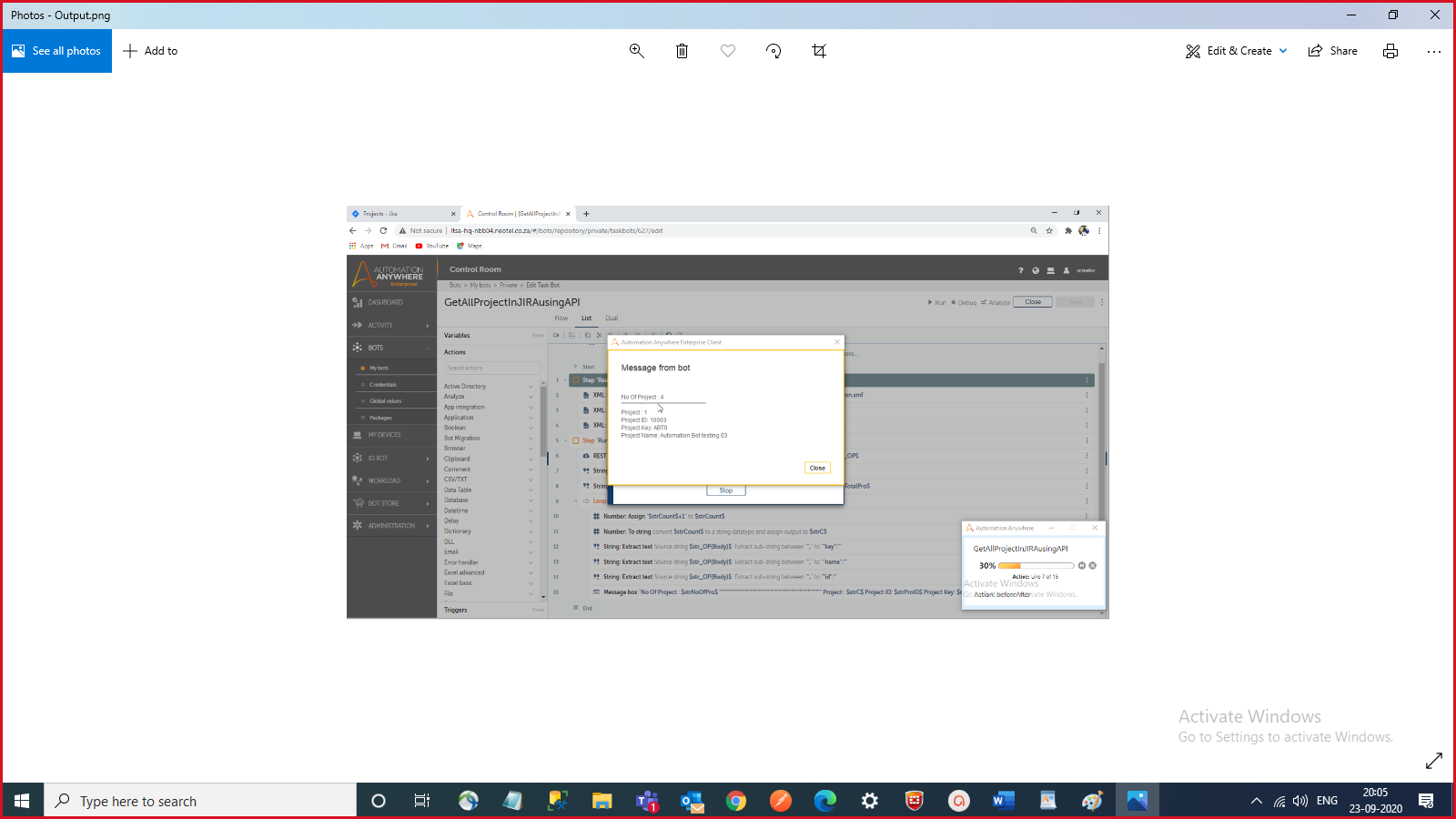 Fetching all Projects available in JIRA by using API.BOT will run REST WEB Services and get all the Projects. and display on Message Box.