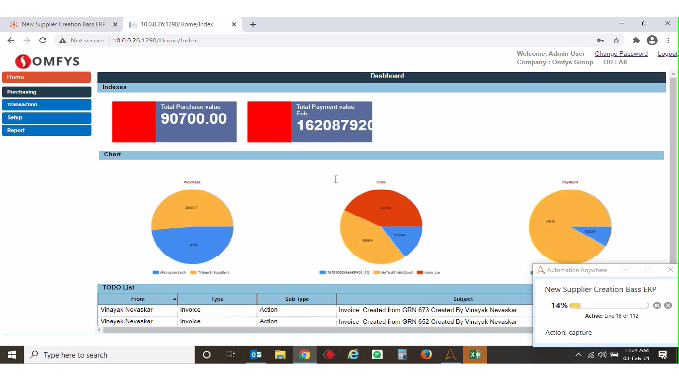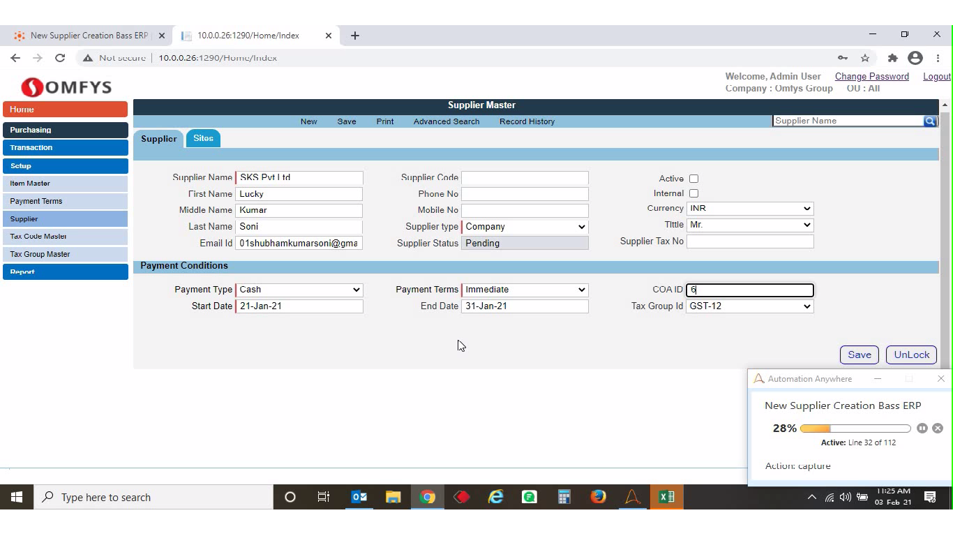 The purpose of automating the new supplier creation process in Bass ERP is to boost the process to next level, a large number of suppliers can be added in very little time. The scope of the automation process is quite standard and based on structured input data provided by the user. RPA will reduce the human efforts to process a high volume of new suppliers in Bass ERP