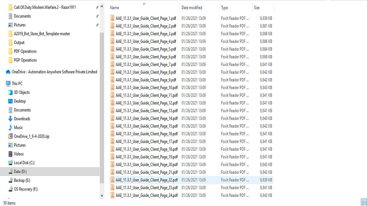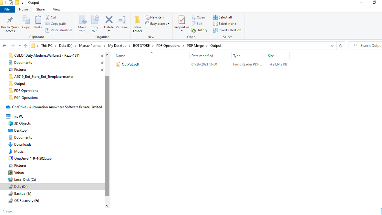 After merging the document, the automation will rename that merged file with Output.PDF as a universal name.