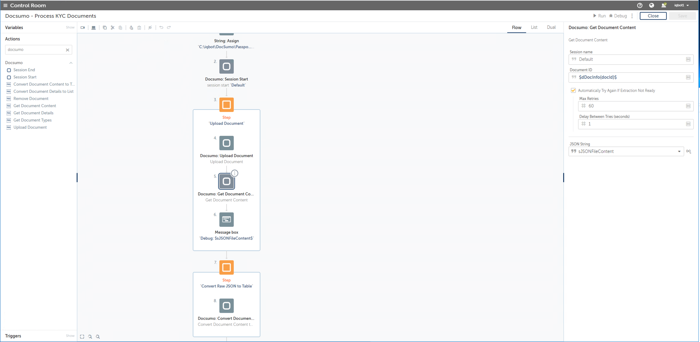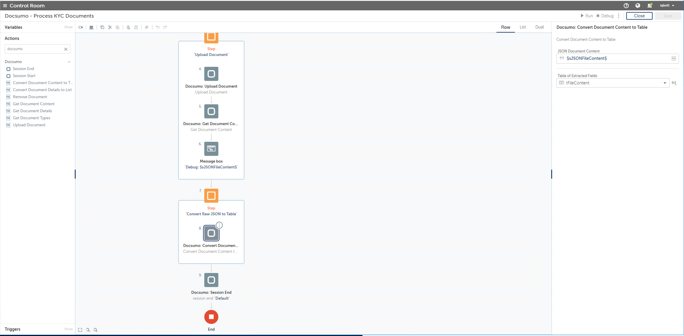 This package allows the consumption of Docsumo models in Automation 360. It can upload documents, extract documents, retrieve extracted content (as JSON), convert extracted content from JSON to a Table (CSV) or a list of dictionaries.