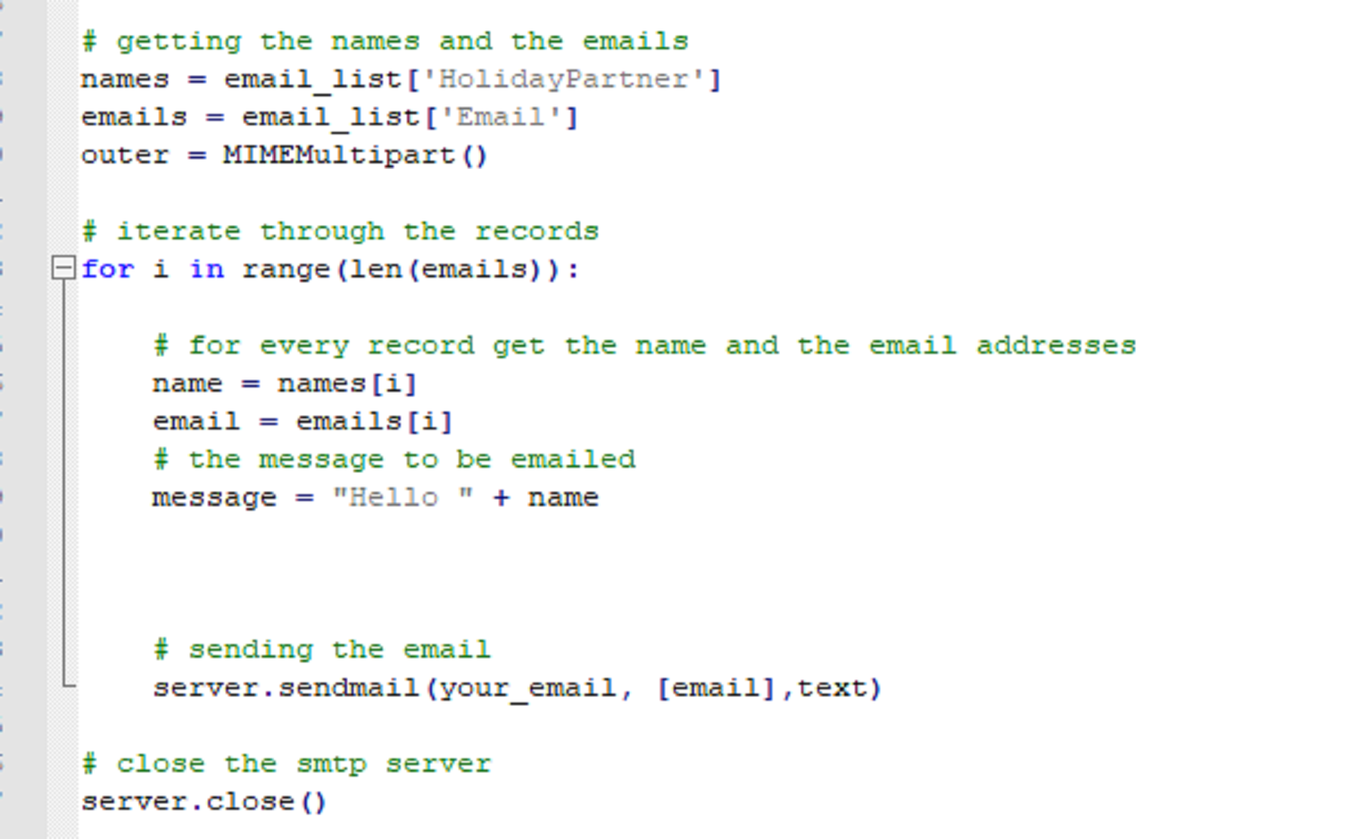 - Python program is used to read each email id and send an email with the marketing flyer as attachment