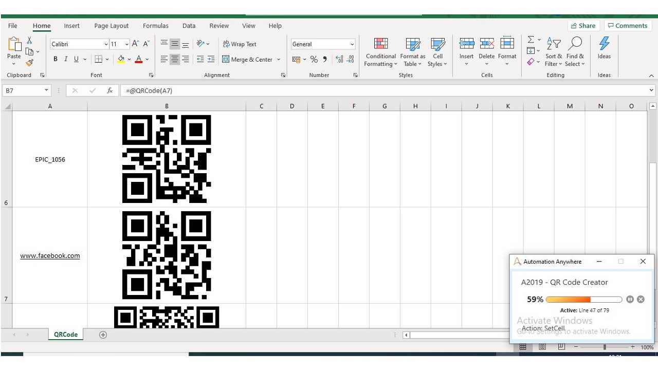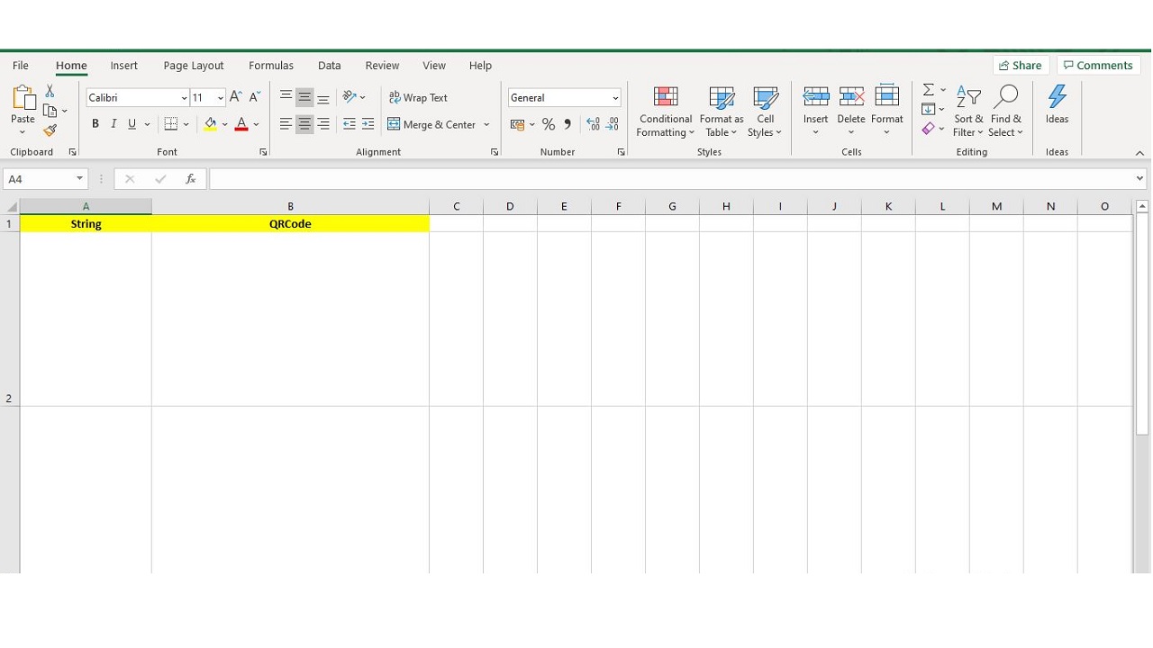 - A predefined output Excel file is created by the user to store the string and generating QR Code