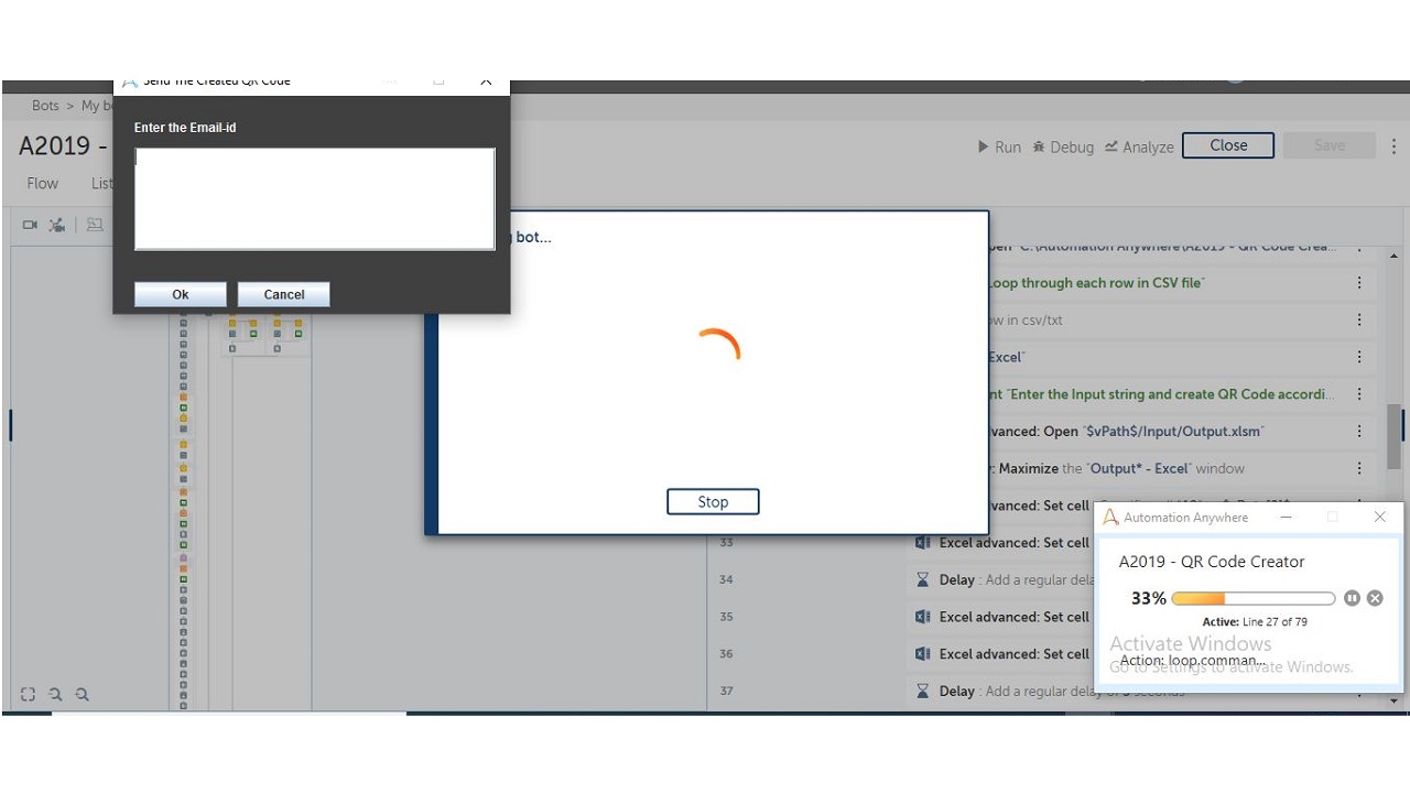 This bot is used for generating a QR code for an input string. The input data will be stored in a text file format. When the bot runs it will read the input text file and generate a QR code.