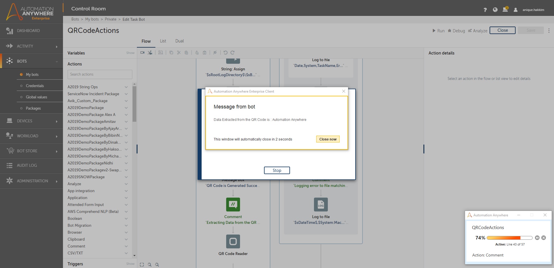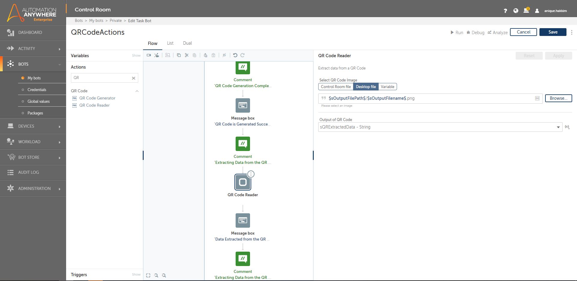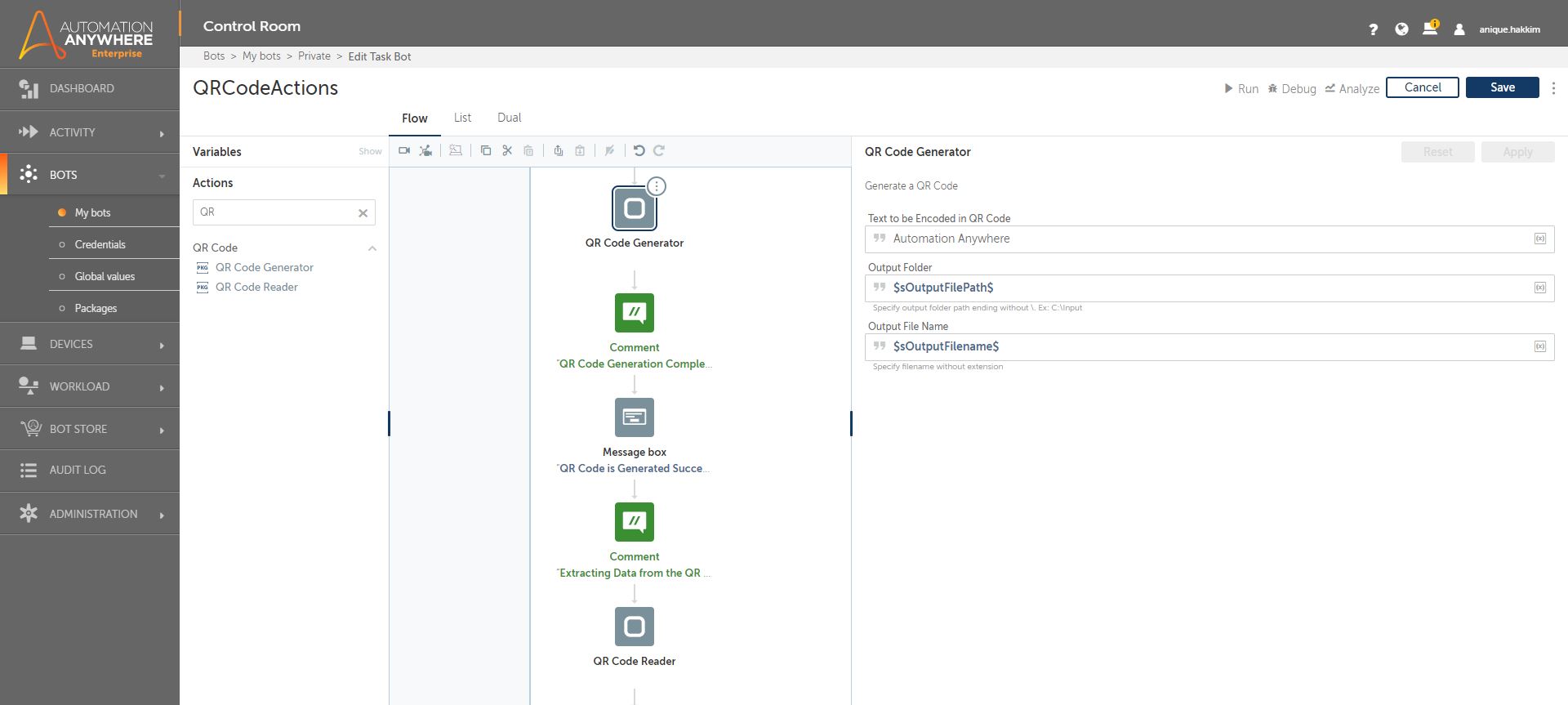 The package enables a bot to generate a QR Code encoded with any text. For example - URLs, email addresses, phone numbers, etc. It also enables you to extract data from any QR Code image of your choice.