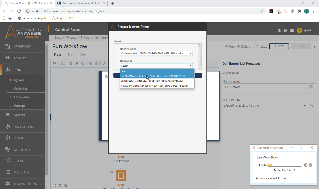 This bot can run Dell Boomi Processes, list Atoms, and Processes, and show the Execution Records