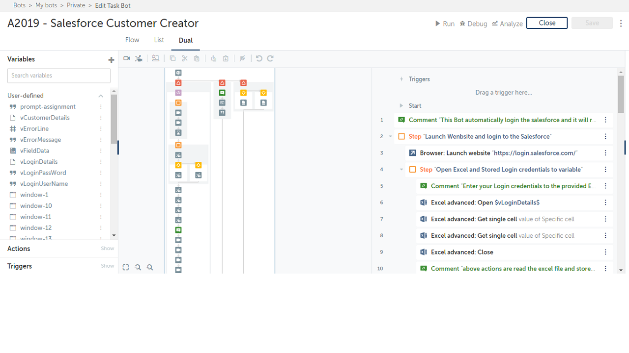 This bot takes customer data from Excel and creates customer records in Salesforce