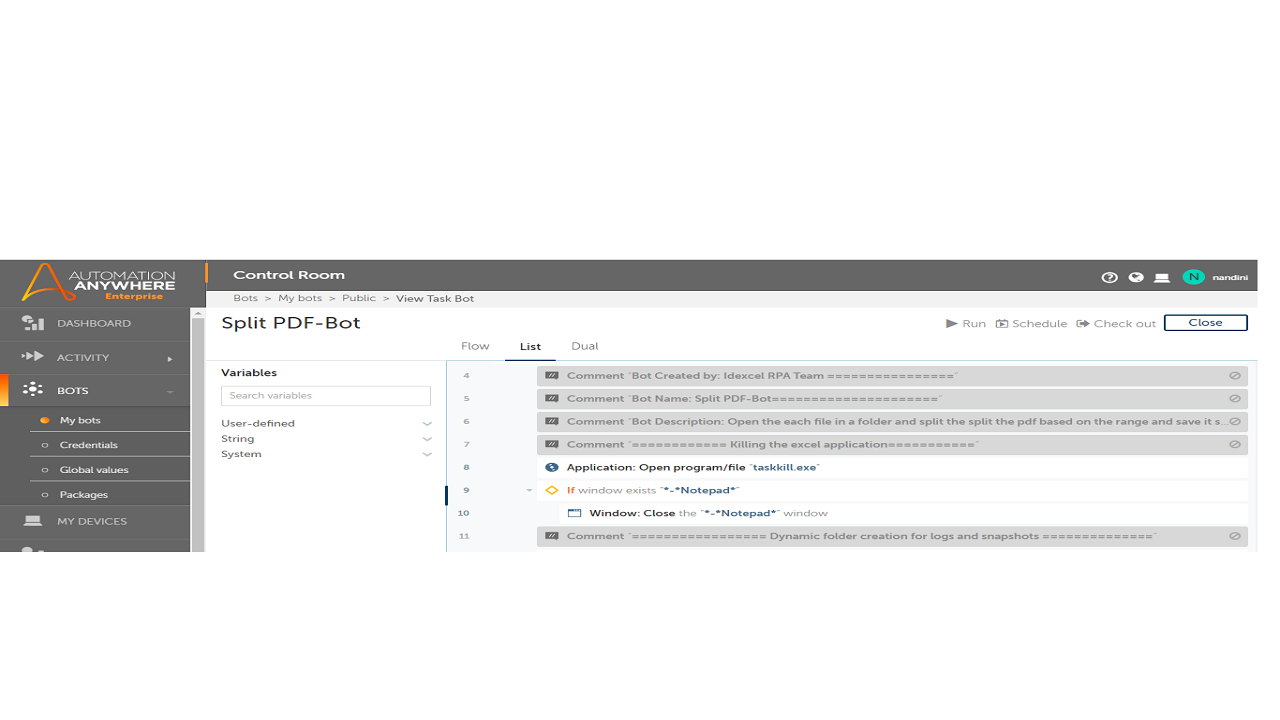 PDF split is a common use-case and is applicable for several industries, in this case, the bot will provide the options to users to select the PDF split range options. Based on which output is generated, the user will have an input config file, and from there they can select the split options.