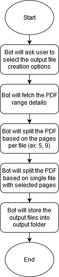 - Bot splits the user specific PDF file into a number of small PDF’s based on user’s requirements