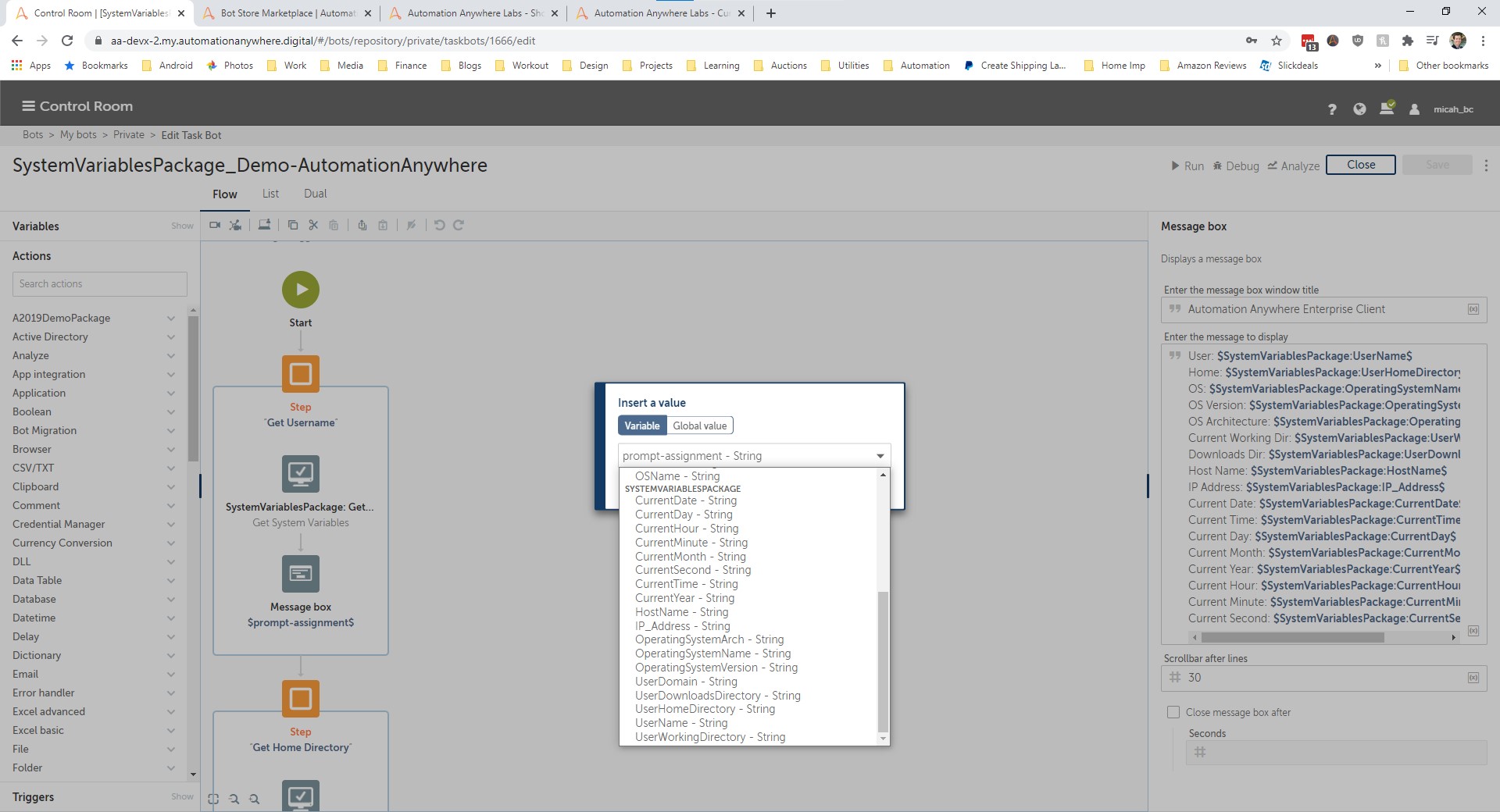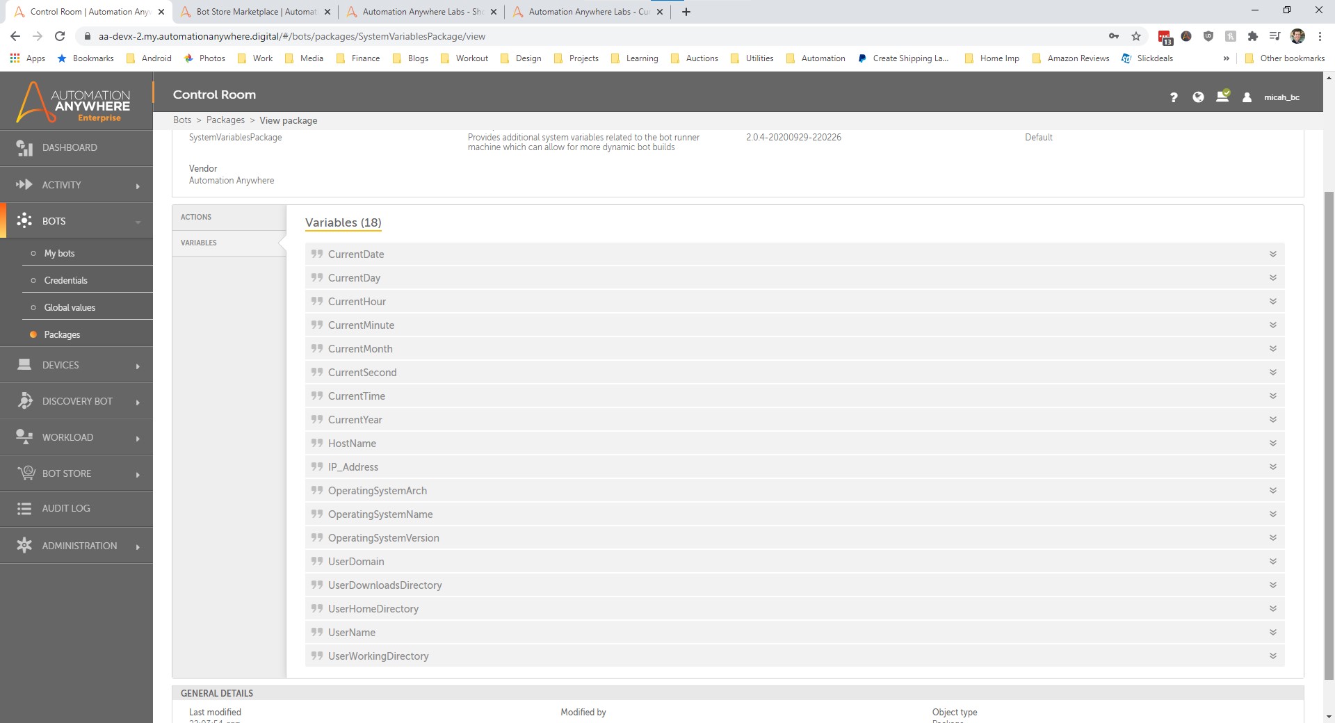 The System Variables package can be used for referencing different bot runner specific values during logging, file downloads, and processing. Common use cases include:
