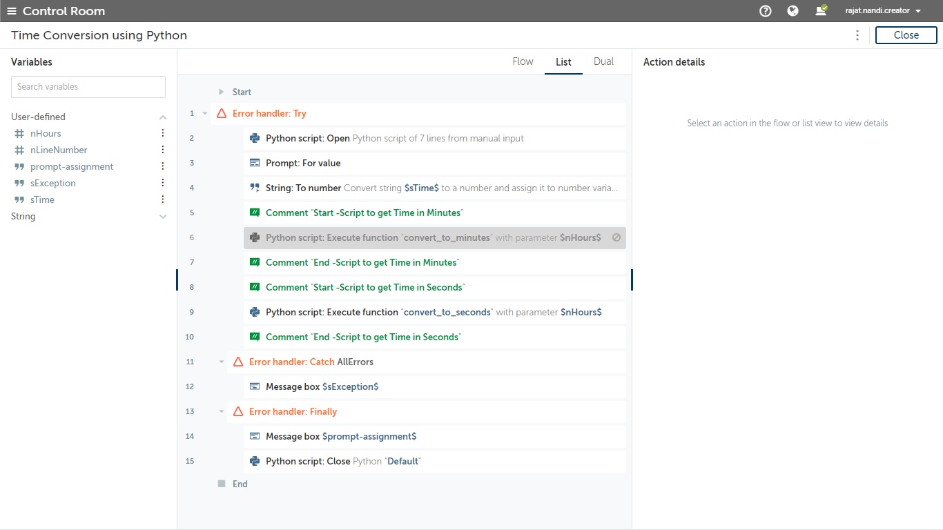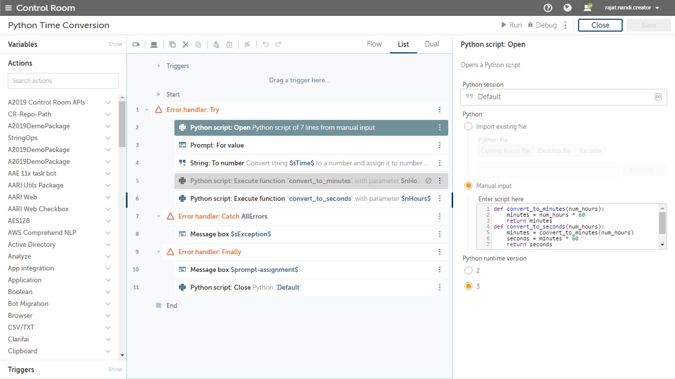 - Inline Python script for conversion of time in hours to seconds or minutes