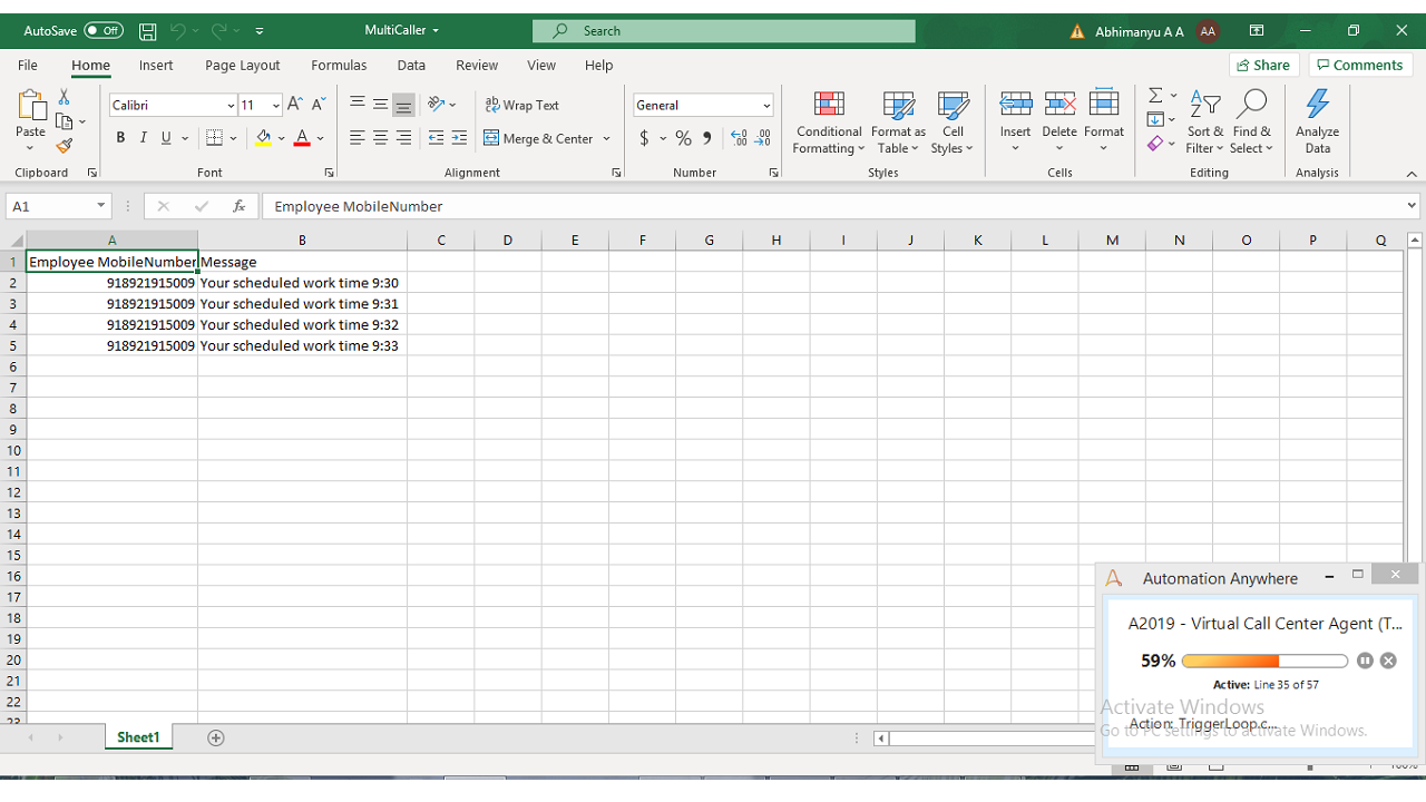 - Setup a Twilio account (Accound SID, Authentication Token, FromNumber) in the Twilio configuration input excel sheet
