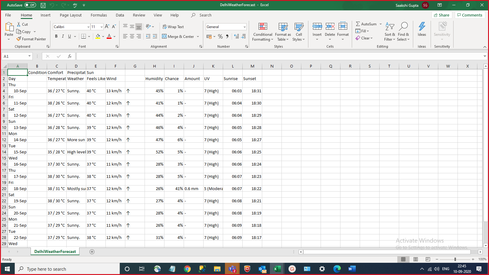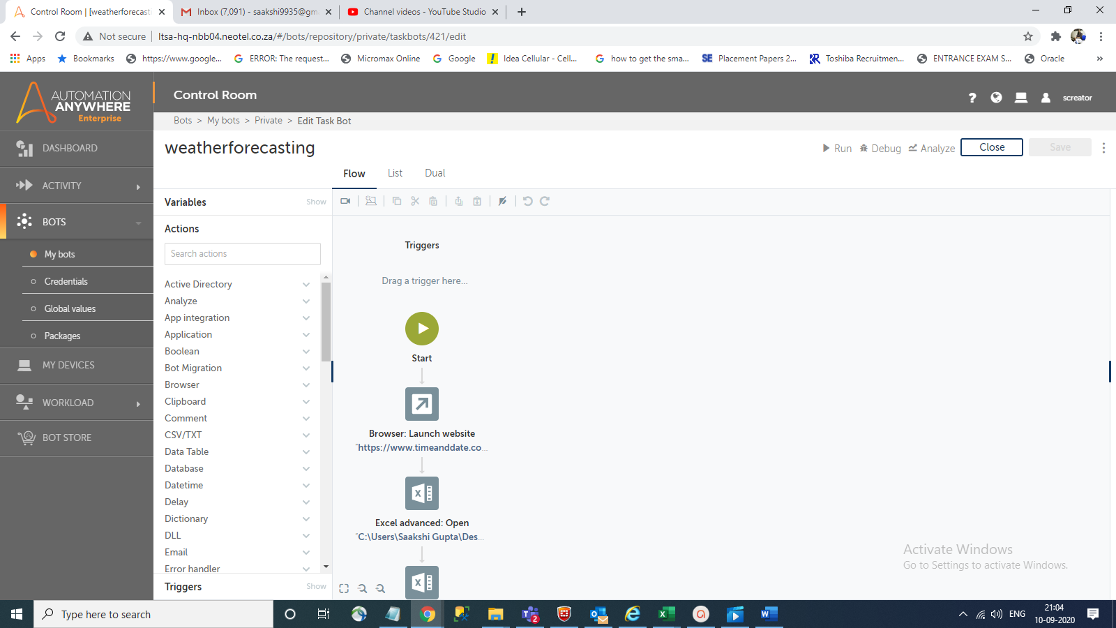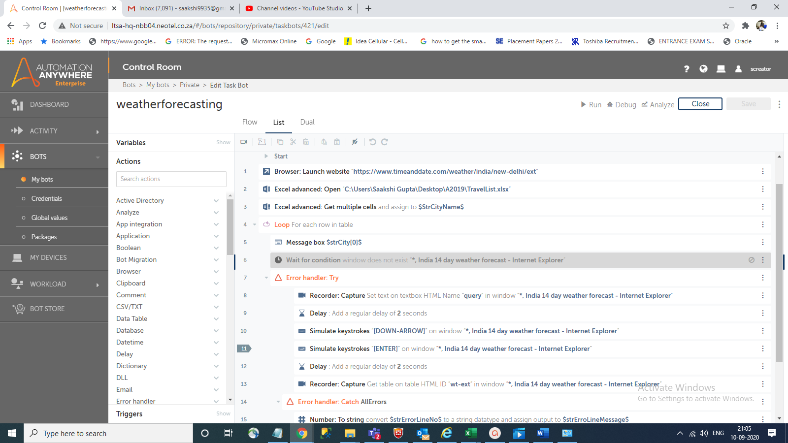 The bot will read the input Excel file for a city name and then search the forecast for the next 14 days of that city and extract that data and send it by mail