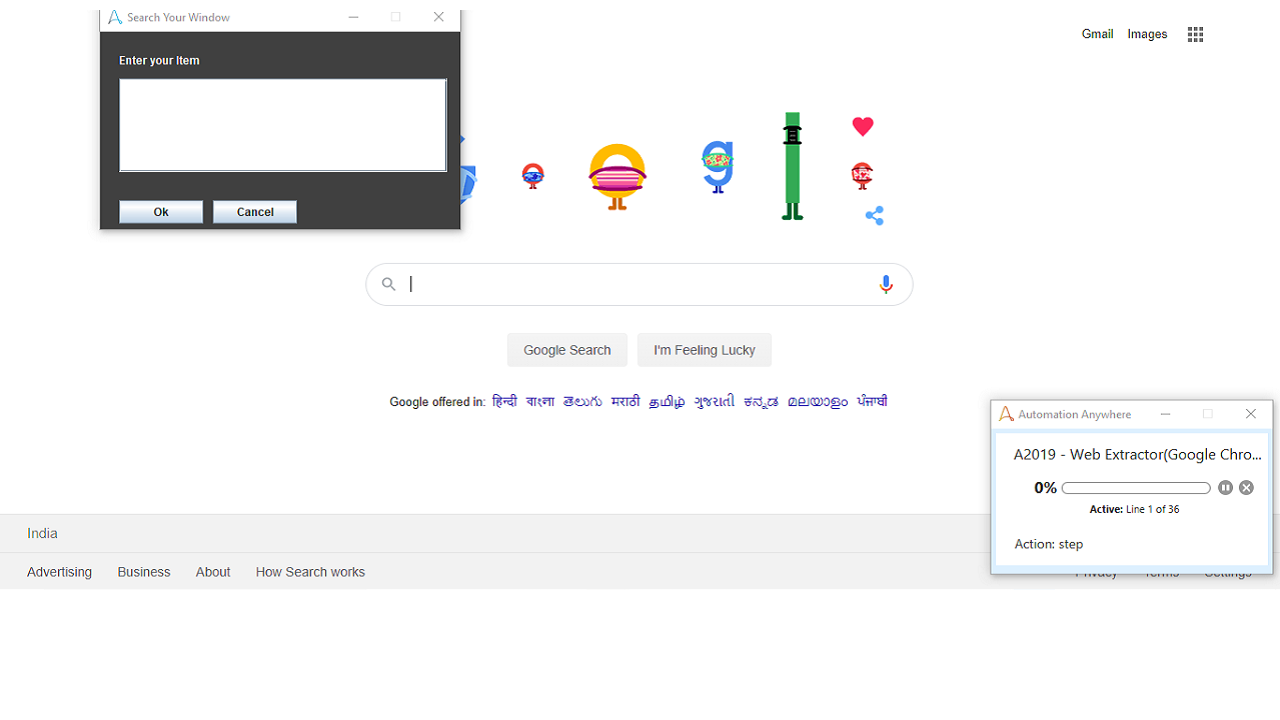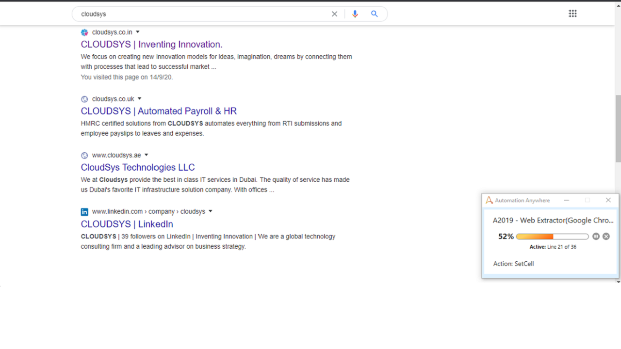 The bot searches and retrieves user-defined information using Google Chrome and populates all the data into an Excel sheet