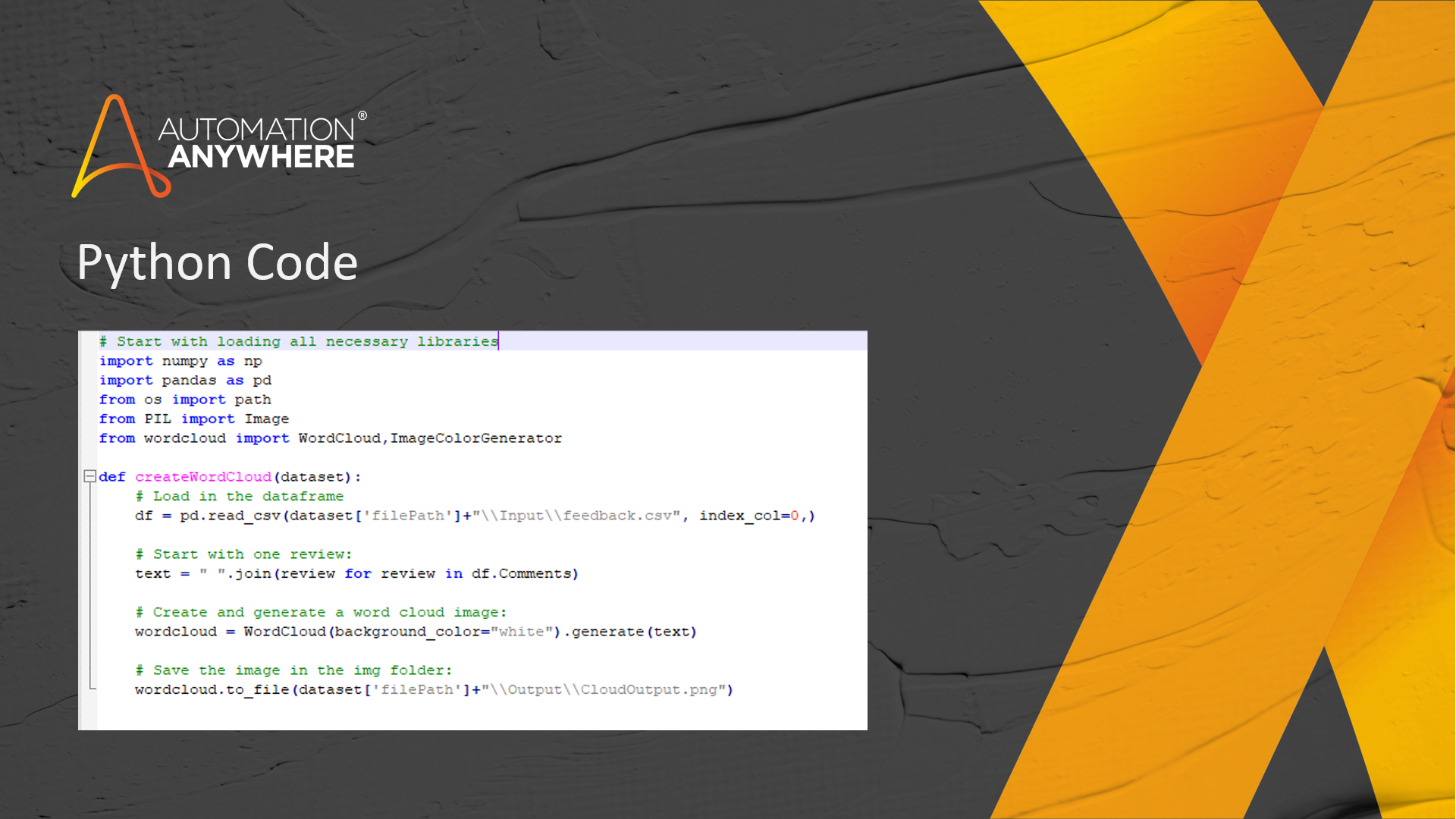 This bot generates Word Cloud images from the data in a CSV file