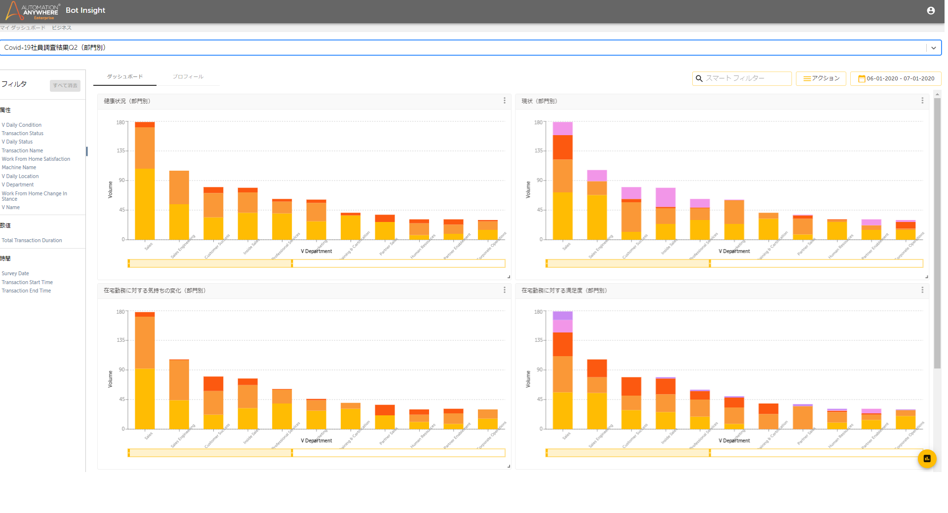 This Bot helps employers understand the health, location, and work status of their workforce by contacting employees via email and prompting them to take a short survey. The anonymized and aggregated results are put on a dashboard and distributed to the designated leaders via email and also available to analyze using Bot Insight.