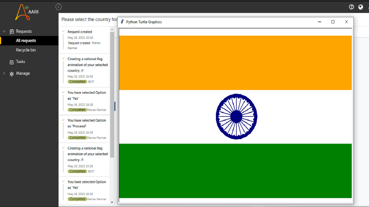 -> if you want to experience AARI-Desktop then please run the AARI master bot Named: Flag_Animation_Master_Bot