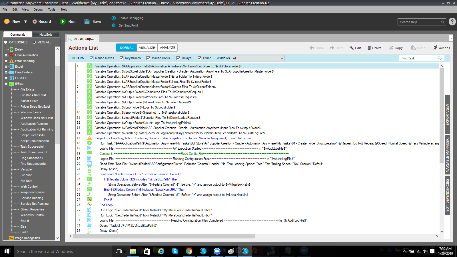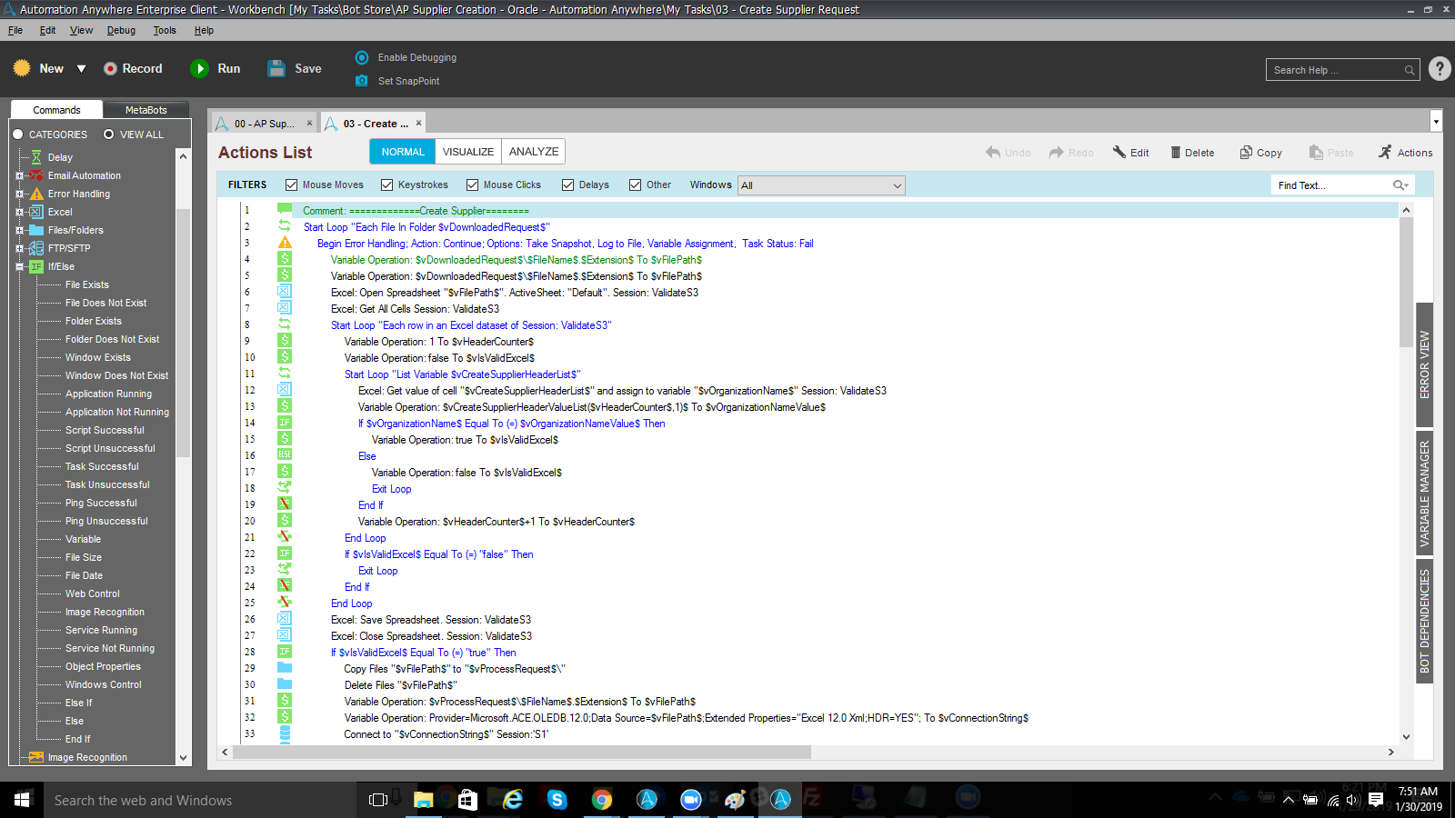 This bot reads an Excel file in the Input Files folder. After that, bot will start the Oracle VM Virtual Box and logs in via Oracle Local Host URL as mentioned in the configuration file. After login, the bot creates suppliers in the Oracle application based on the input in the Excel file.