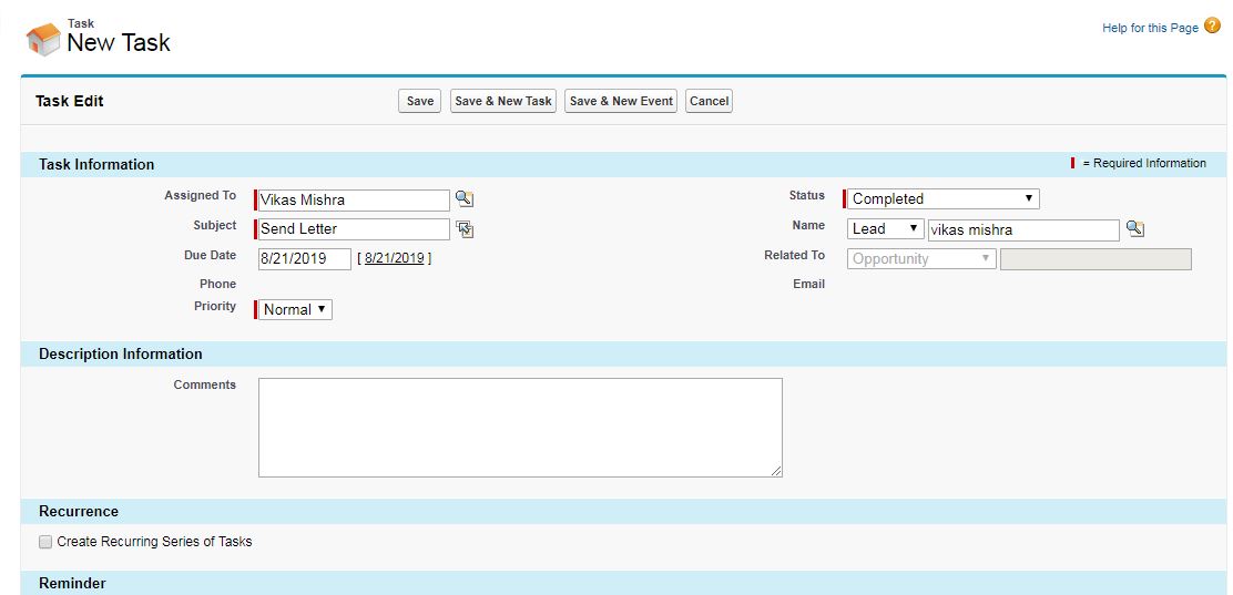 Activity Creation In Salesforce