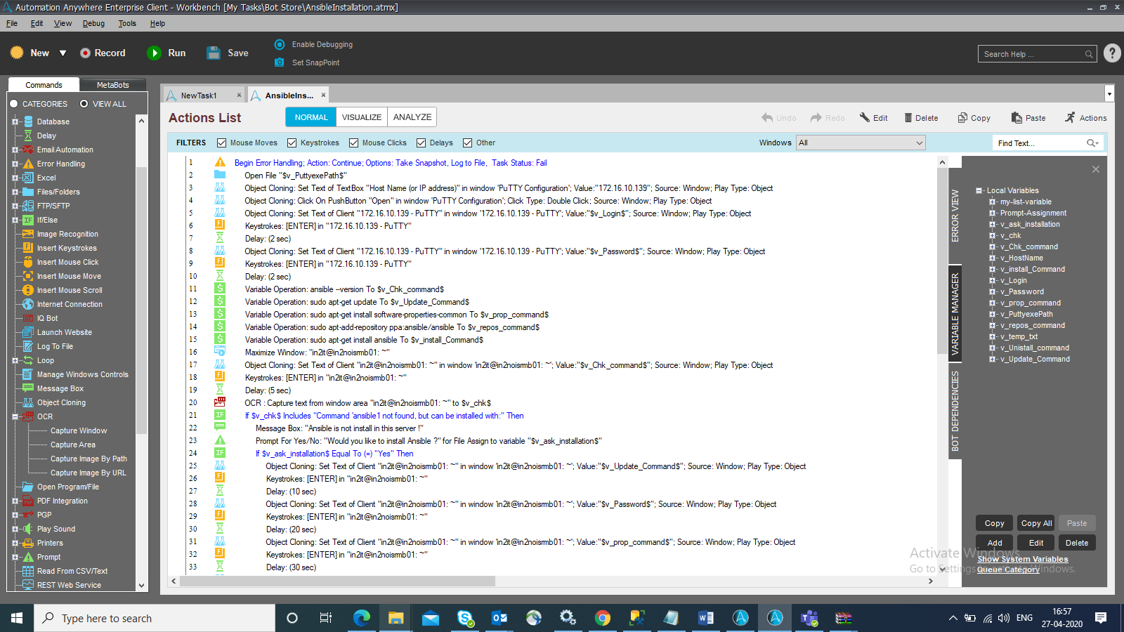 Reads the basic details of terminal emulator and Ubuntu server from config file (ConfigFile.txt) and connect to Ubuntu server and then will install or uninstall Ansible based on selections.