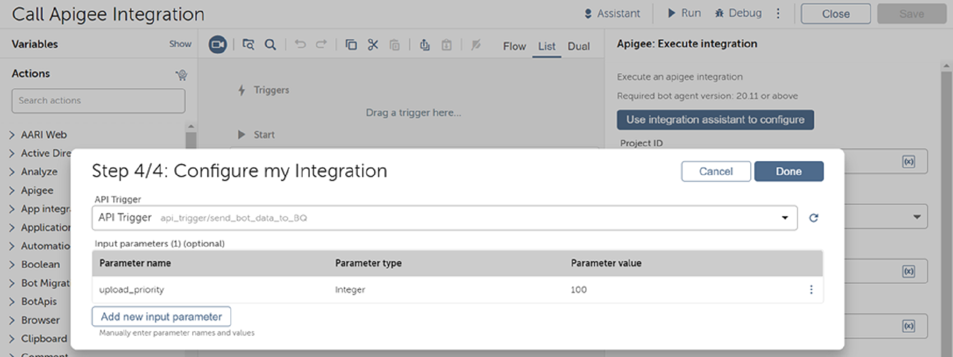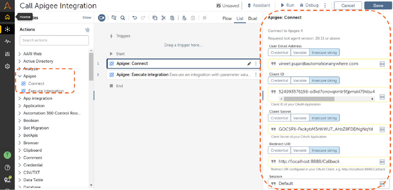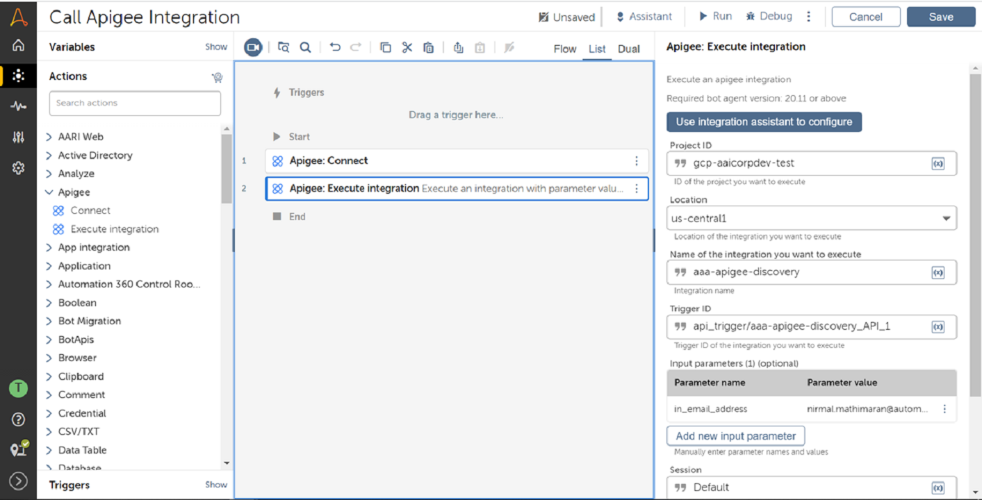 This command package provides RPA developers with a native capability to invoke integrations in Apigee. They can seamlessly integrate, access any data in the enterprise and drive more value from reusing existing assets created by their IT and LoB automation teams.