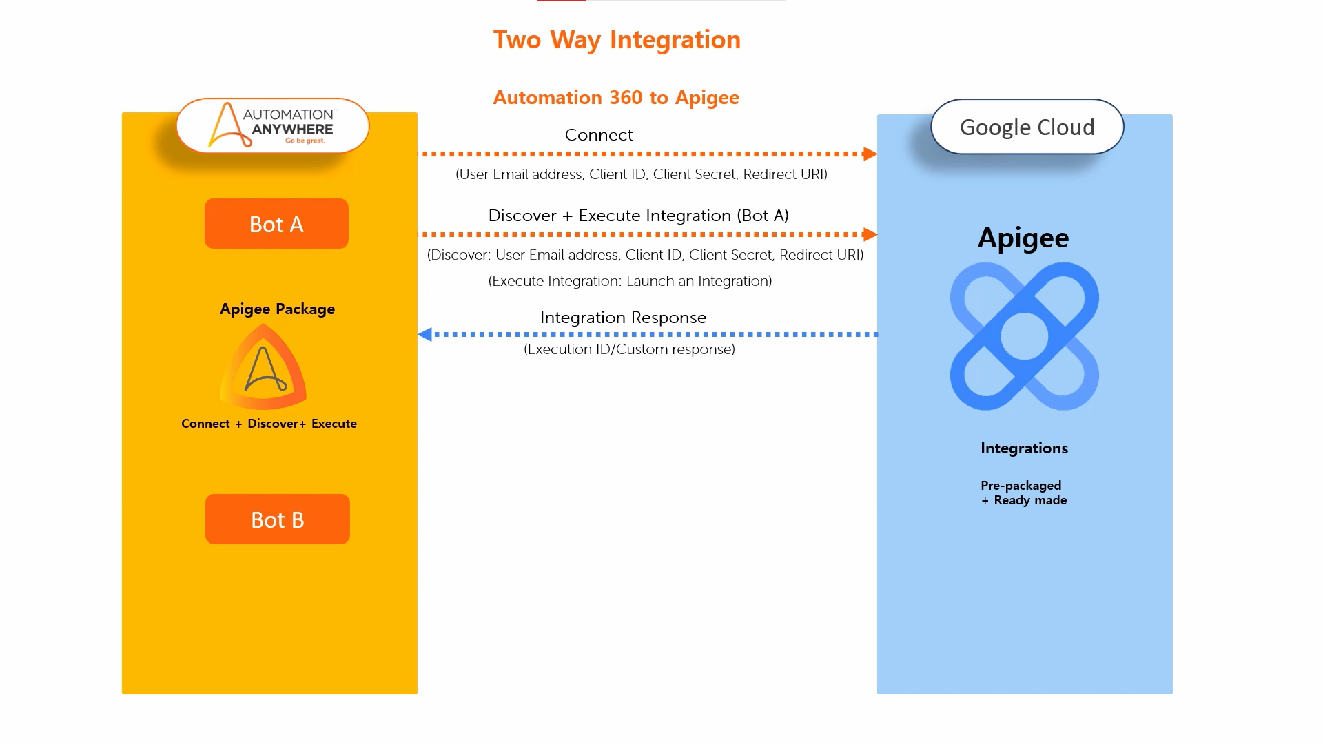 - Brings RPA in the loop for apigee integrations