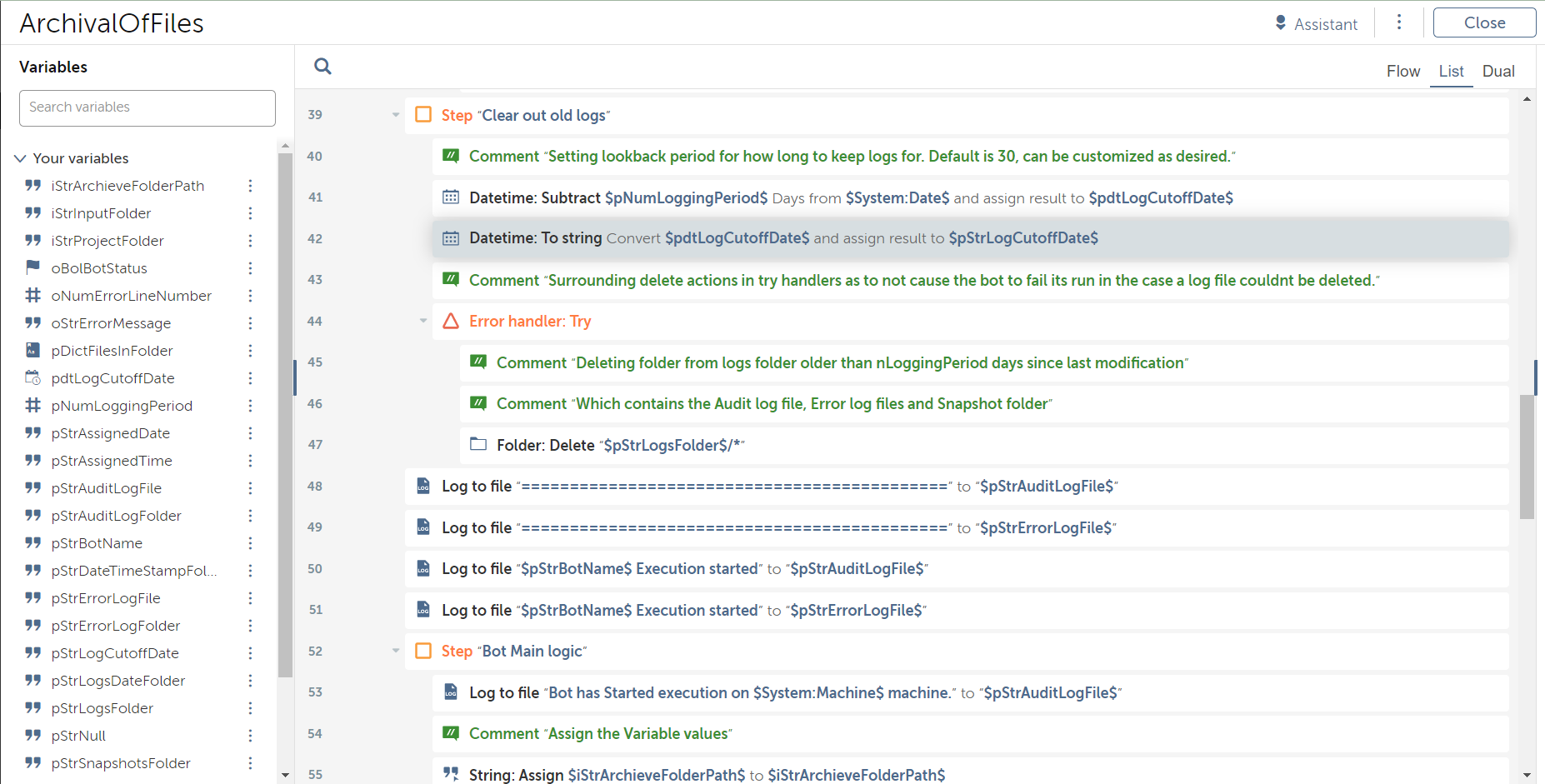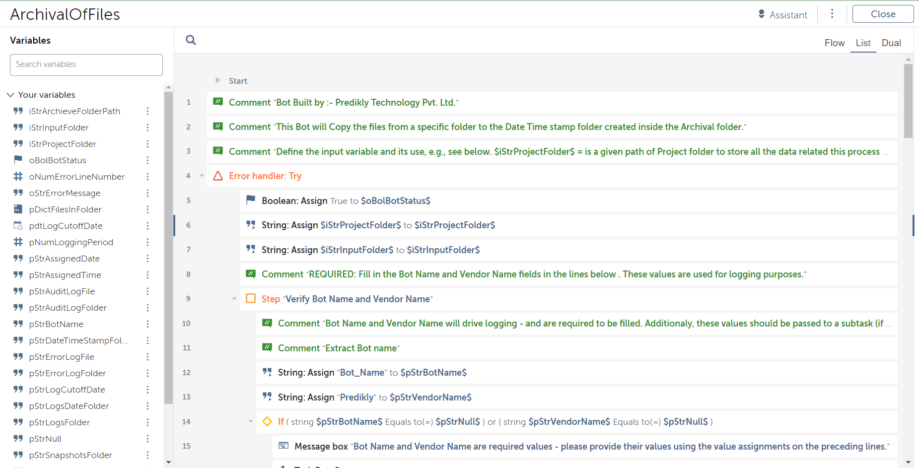 This bot will be used for archival purposes. The user has to mention the folder path (consisting of files), he/she wants to archive. This Bot is used to maintain historical data along with current data by doing file and folder management which in turn helps in the maintenance of CPU and disk space.