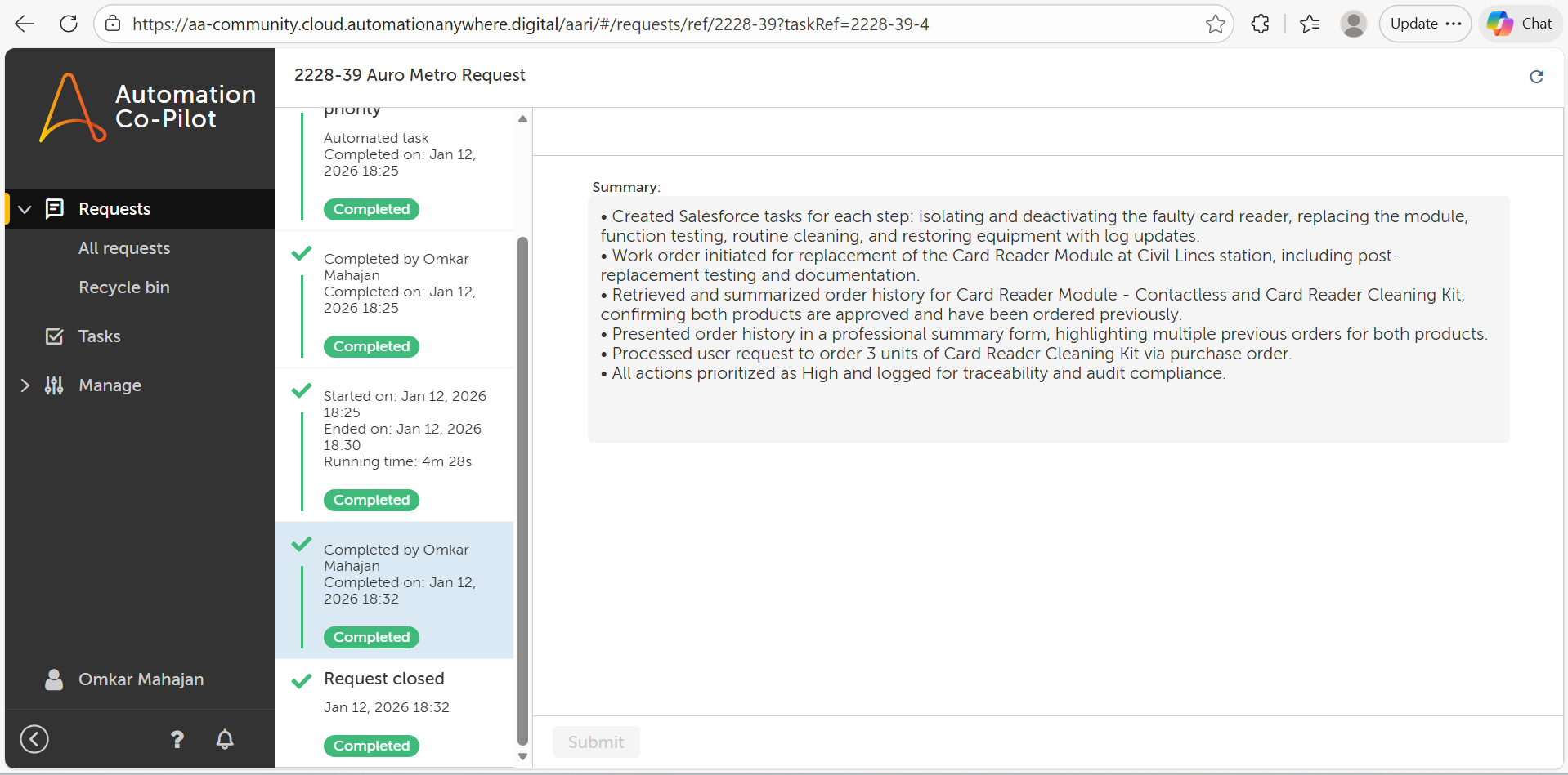 Aura Metro represents the future of Autonomous Operations. By bridging the gap between unstructured data (manuals) and structured systems (Salesforce), it ensures metro stations remain functional, safe, and efficient with minimal administrative overhead.