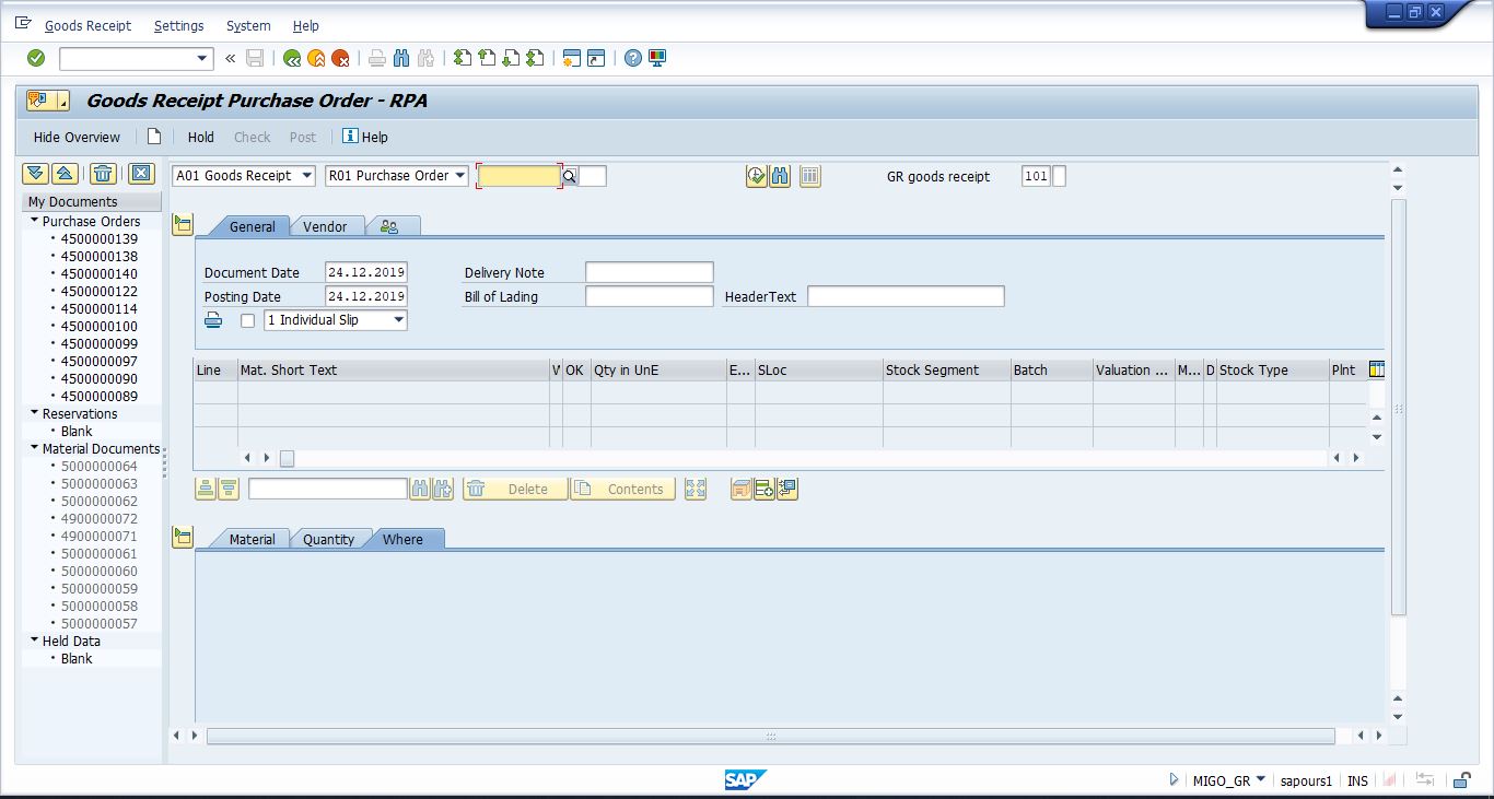 - Run the task bot to automate the process of MIGO_GR Goods Receipt