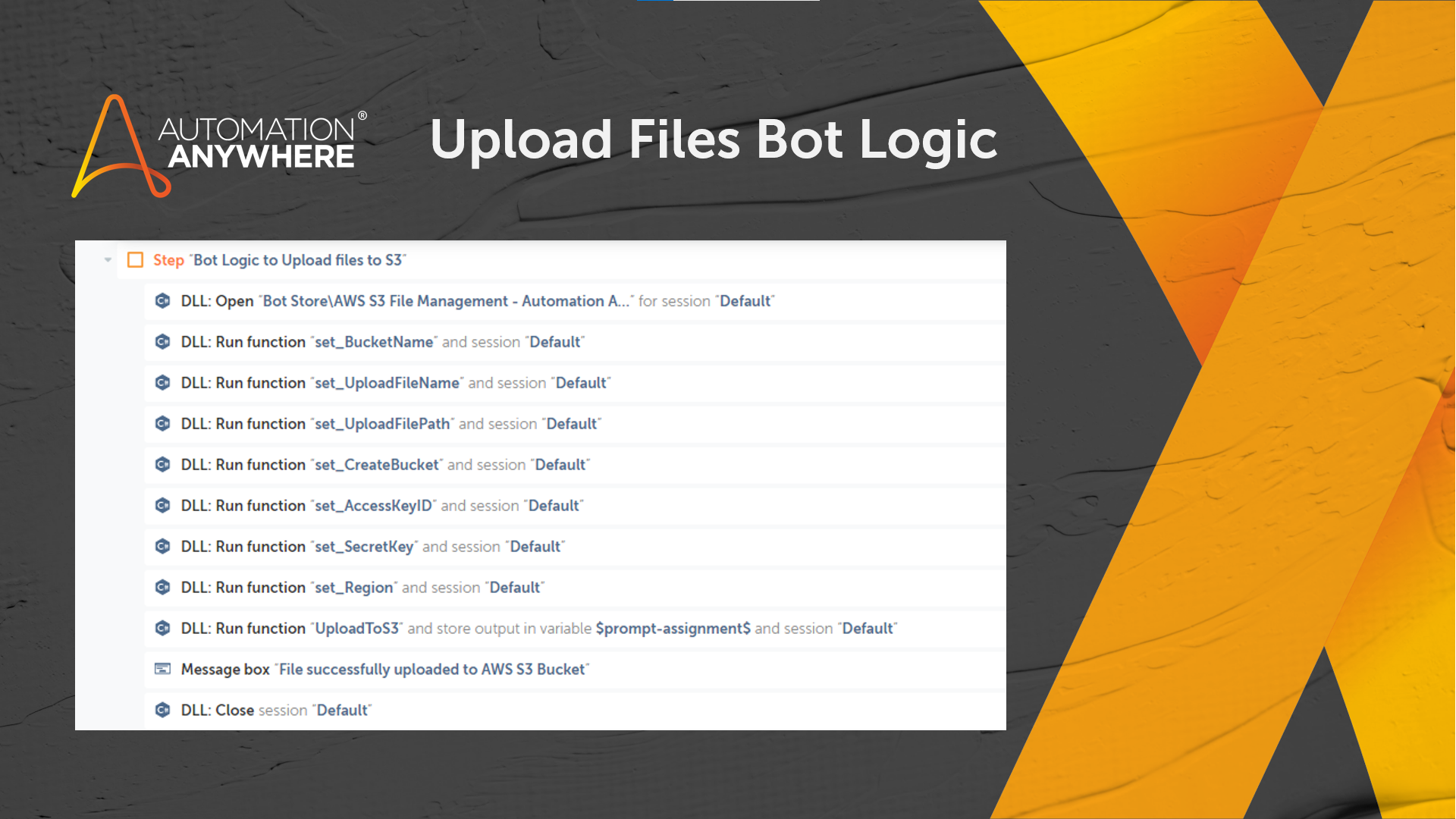 This bot can upload files from your local system to AWS S3 and can download files from AWS S3 to the local system.