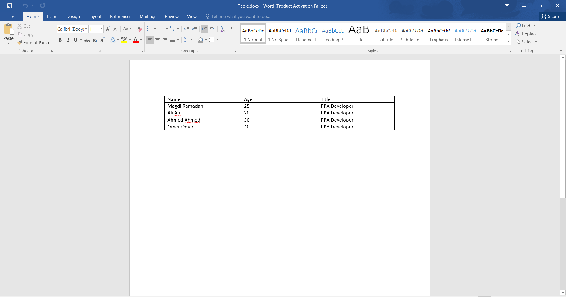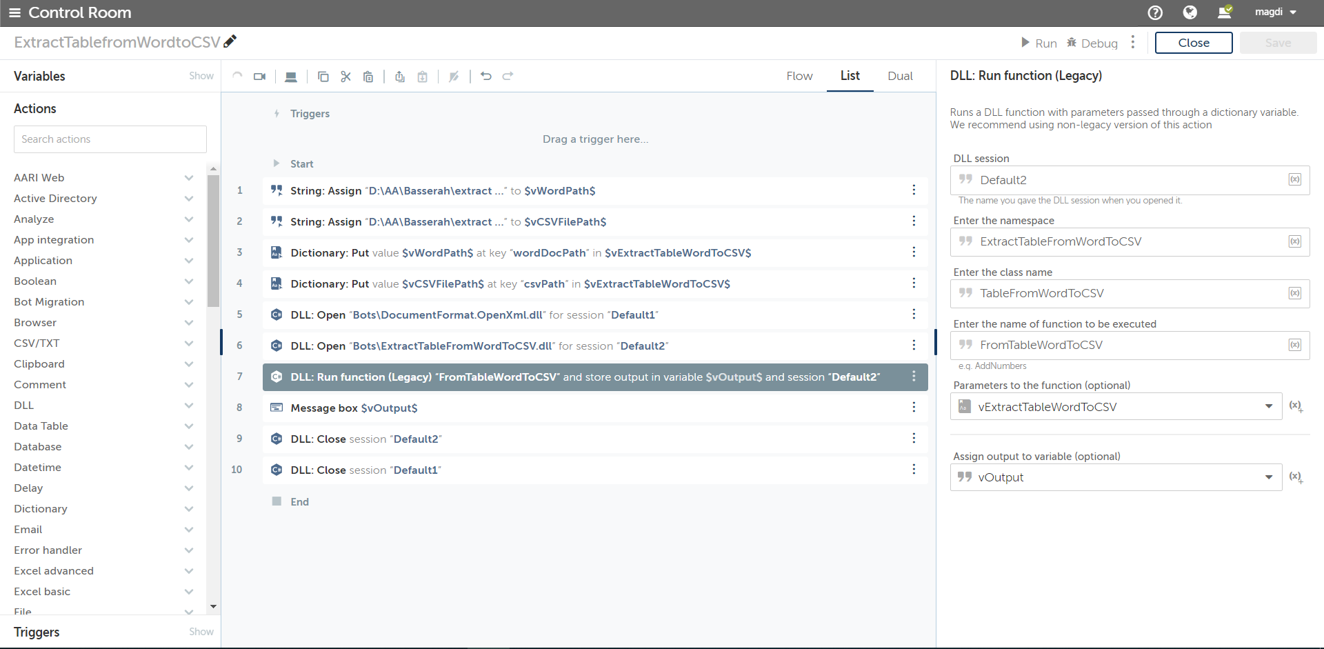 vExtractTableFromWordToCSV: Input Dictionary type contains Key: