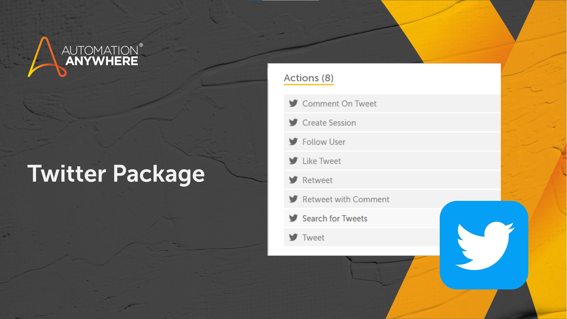 The Automation 360 Twitter Package enables individuals and organizations to automate the process of interacting with other users on Twitter.