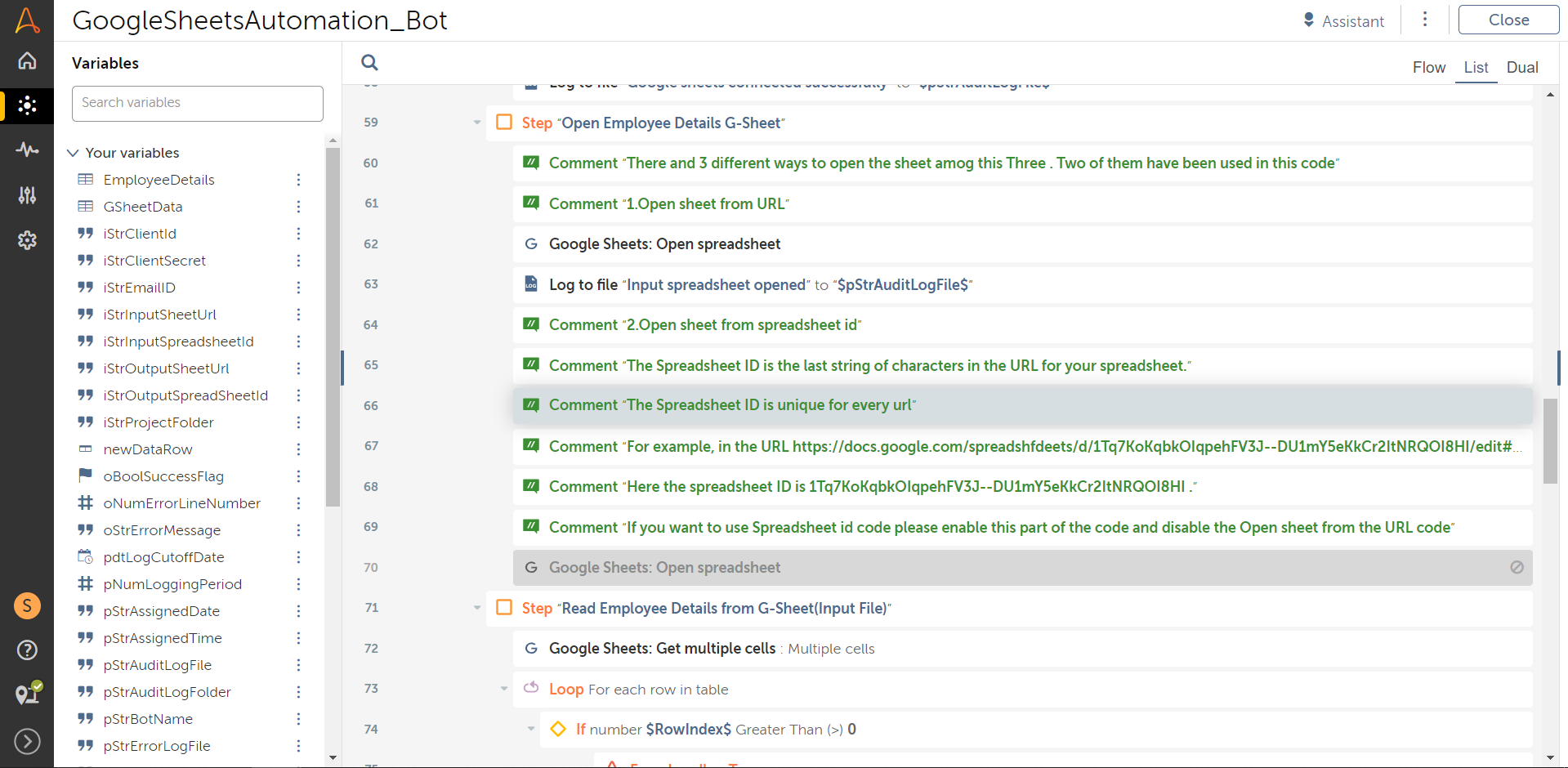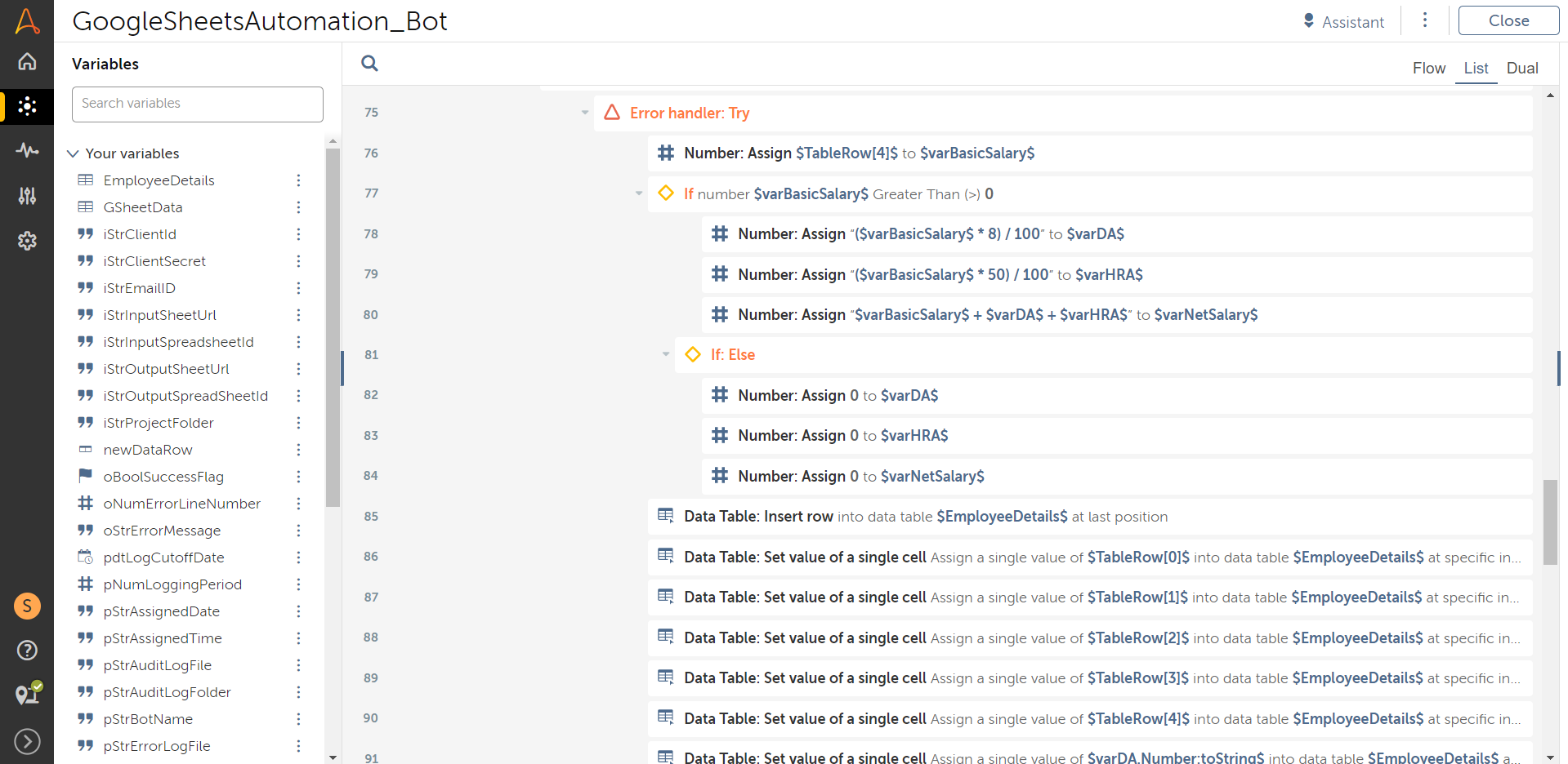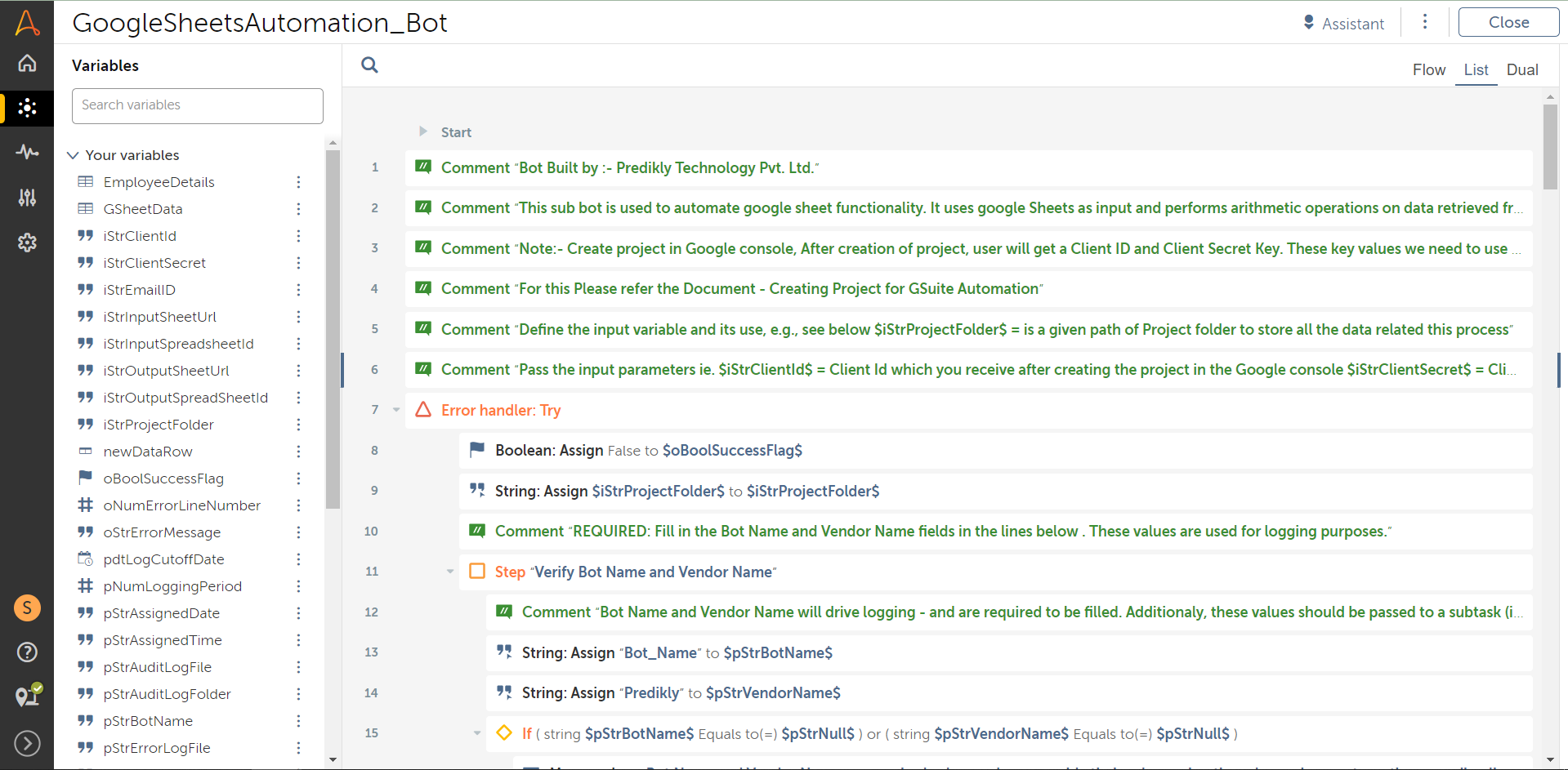 This bot is used to automate Google Sheets functionality. It demonstrates the use of Google Sheets and performs arithmetic operations on data retrieved from Google Sheets. After the arithmetic operation, the bot will write updated data to other Google Sheets.