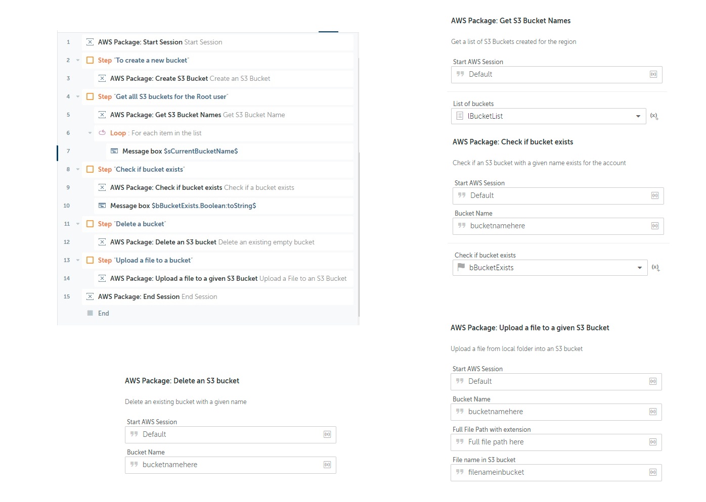 AWS S3 Bucket Operations bot helps to automate routine AWS S3 cloud operations. Unlike the DLL, this does not need .net to be installed or additional parameters
