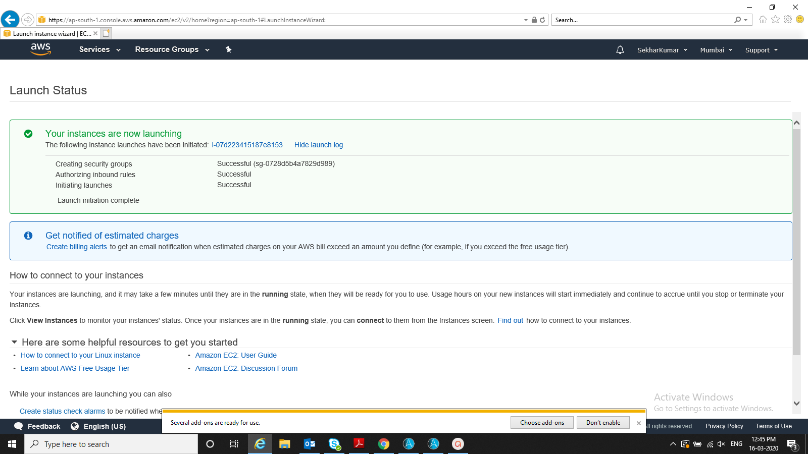 3. Automatically the bot will create a free 2-tier instance with 10GB memory space in Amazon Cloud using the AWS Management Console.