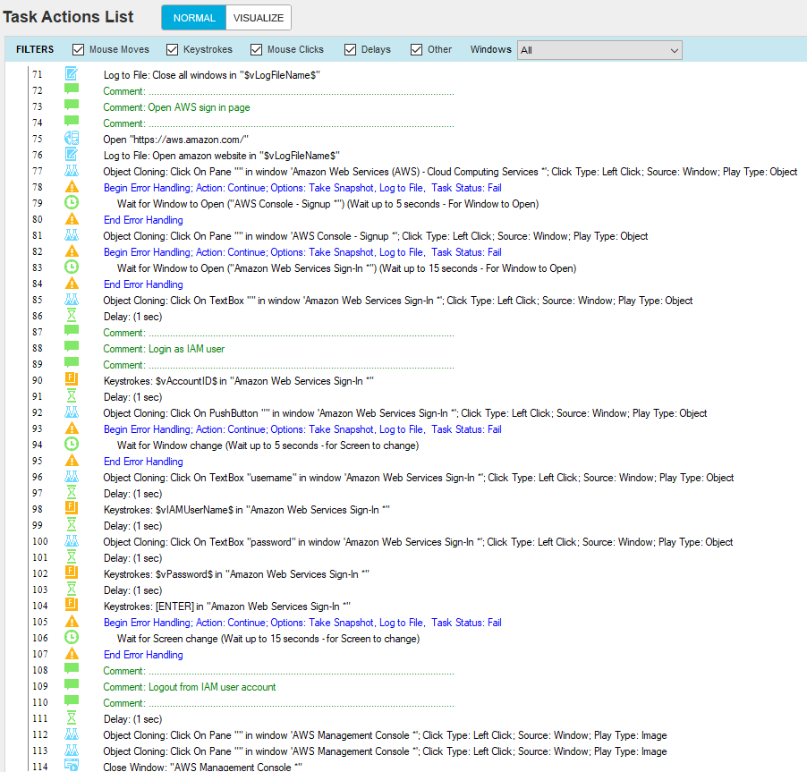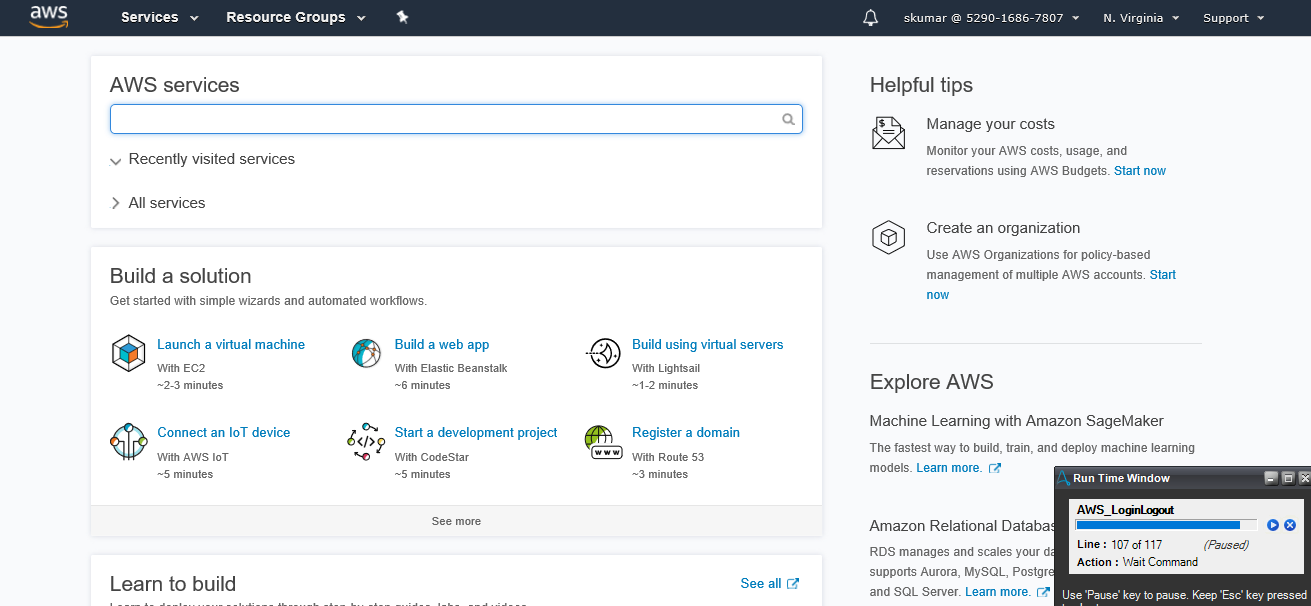 This bot logs into the AWS IAM user account, and logs out of the same after clearing browsing history